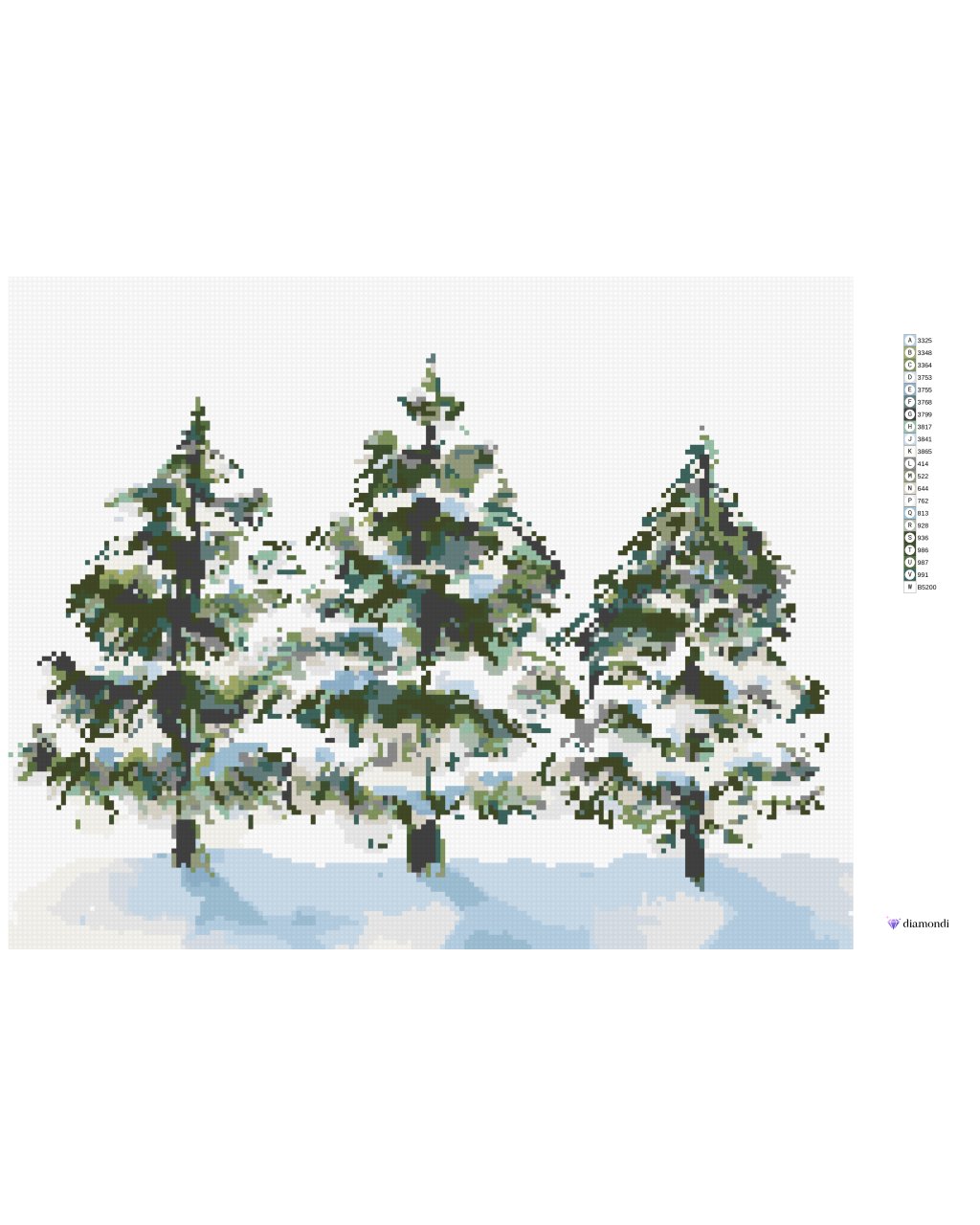 Diamantové maľovanie - TRI IHLIČNATÉ STROMY A SNEH (ALEXANDRIA GILBERT)