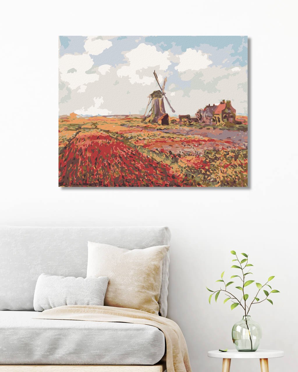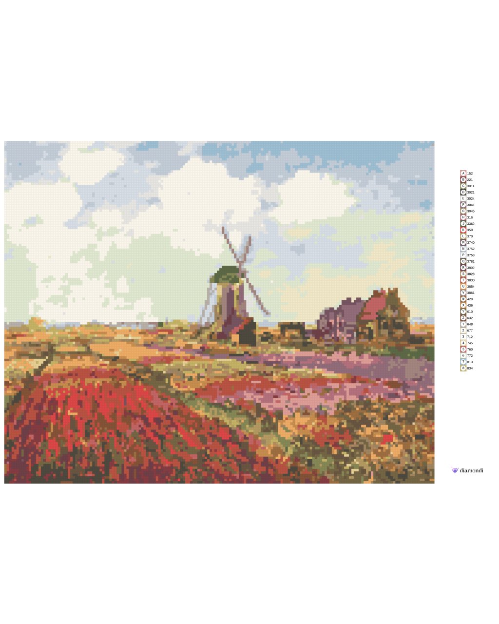 Diamantové maľovanie - TULIPÁNOVÉ POLE V HOLANDSKU (CLAUDE MONET)