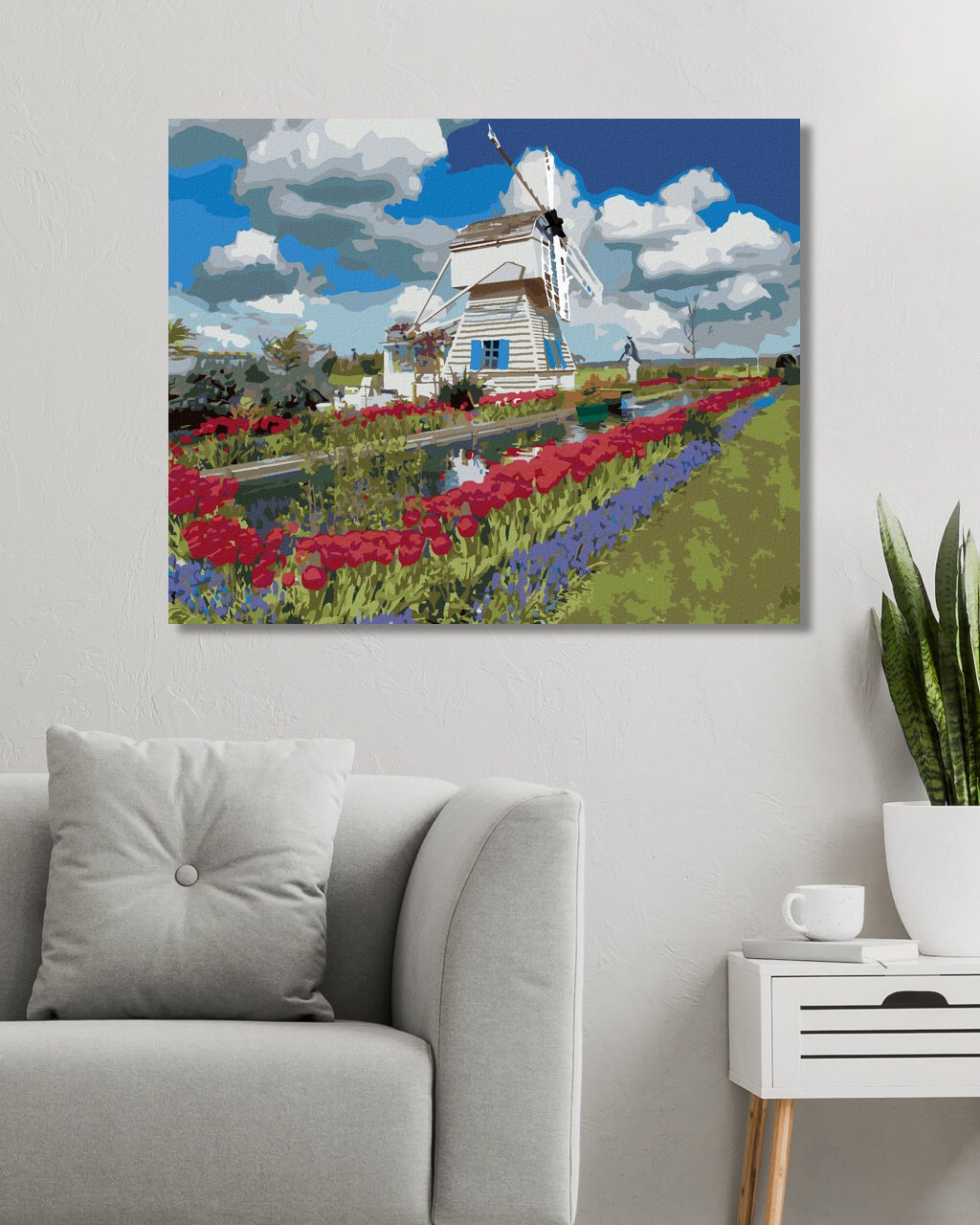 Diamantové maľovanie - VETERNÝ MLYN A TULIPÁNY (DENNIS FRATES)