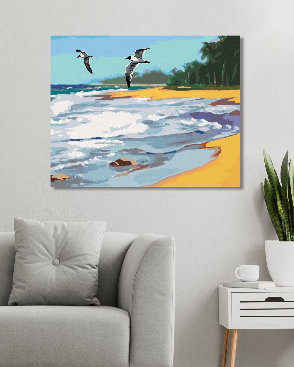 Diamantové maľovanie - VTÁKY LETIACE NAD PLÁŽOU (D. RUSTY RUST)