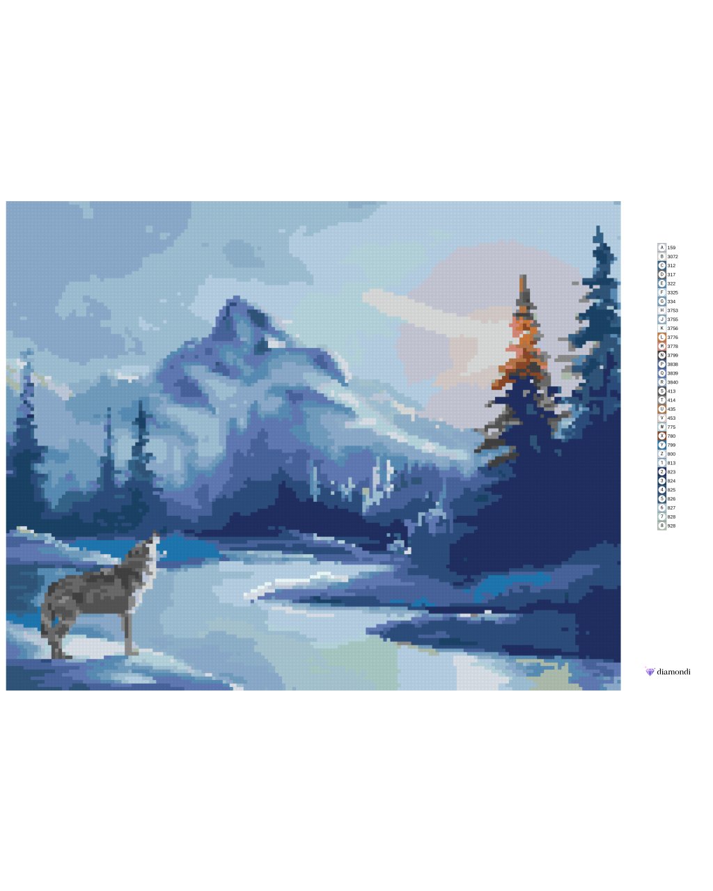 Diamantové maľovanie - VYJÚCI VLK, SLNKO A HORY (D. RUSTY RUST)