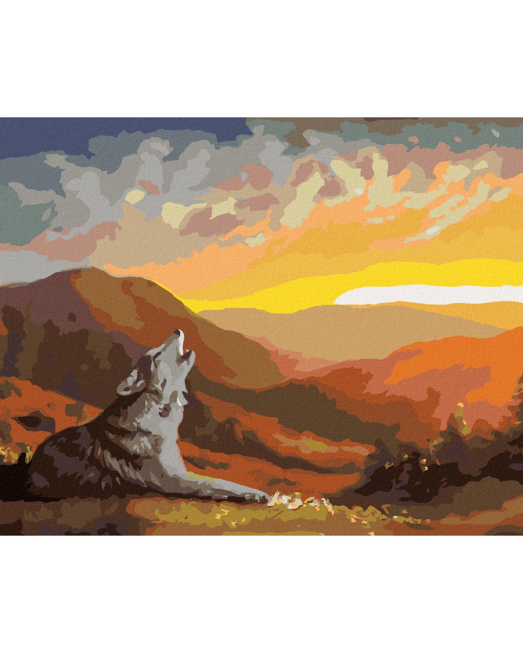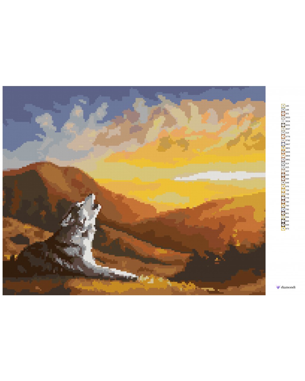 Diamantové maľovanie - VYJÚCI VLK, ZÁPAD SLNKA A HORY (D. RUSTY RUST)