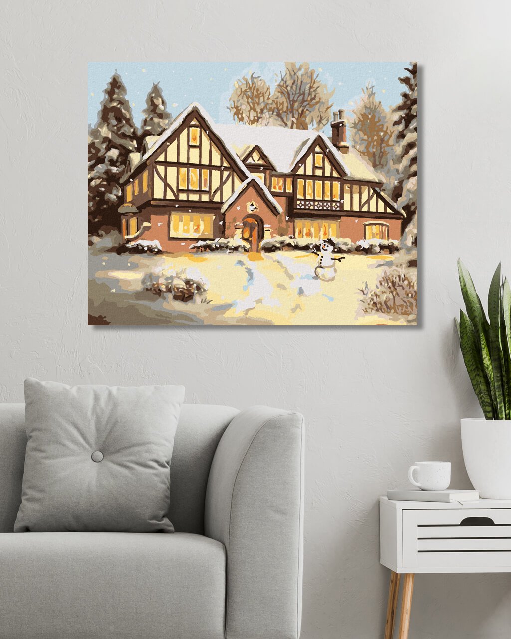 Diamantové maľovanie - ZASNEŽENÝ DOM SO SNEHULIAKOM (D. RUSTY RUST)