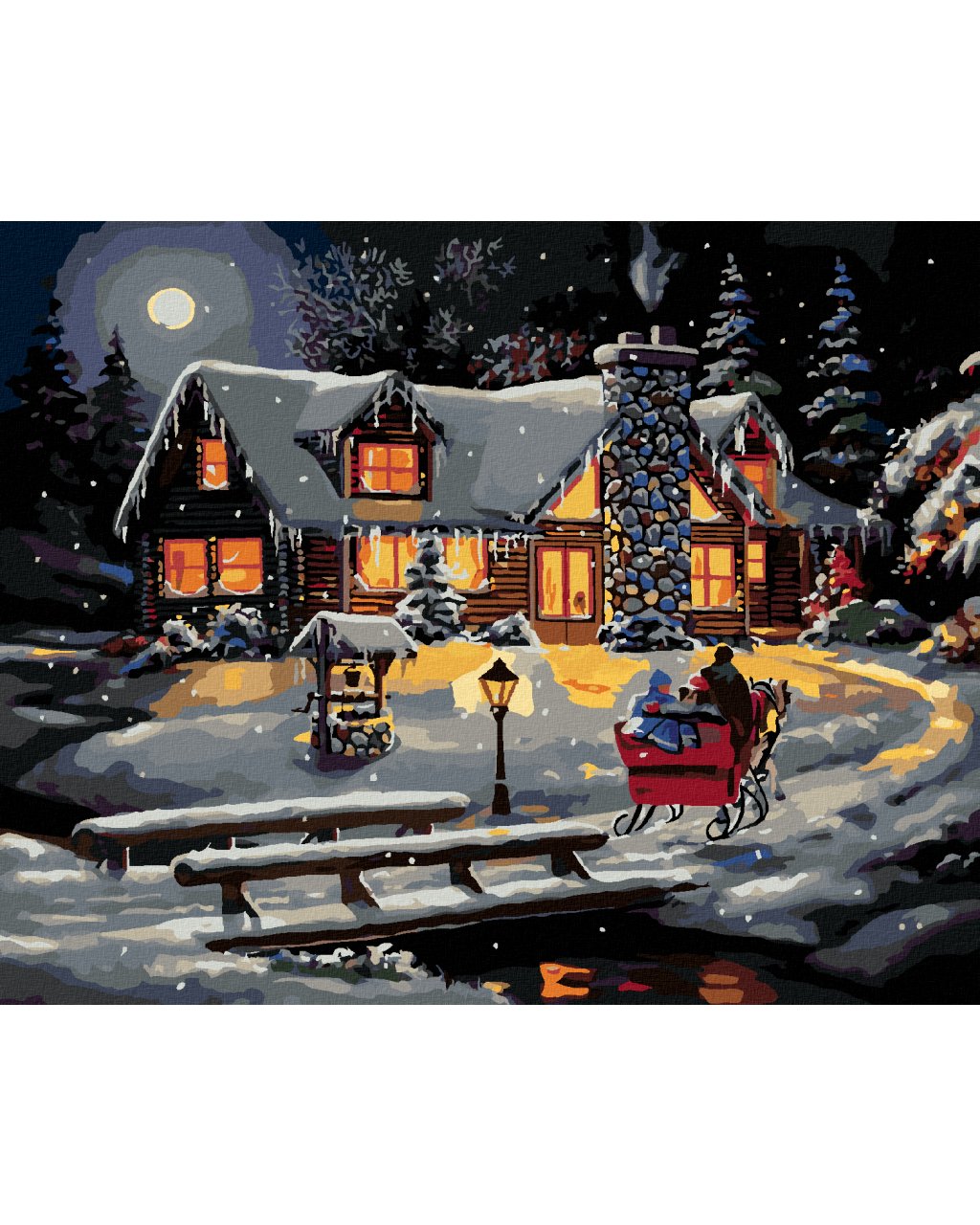 Diamantové maľovanie - ZASNEŽENÝ ZRUB PO SÚMRAKU (D. RUSTY RUST)