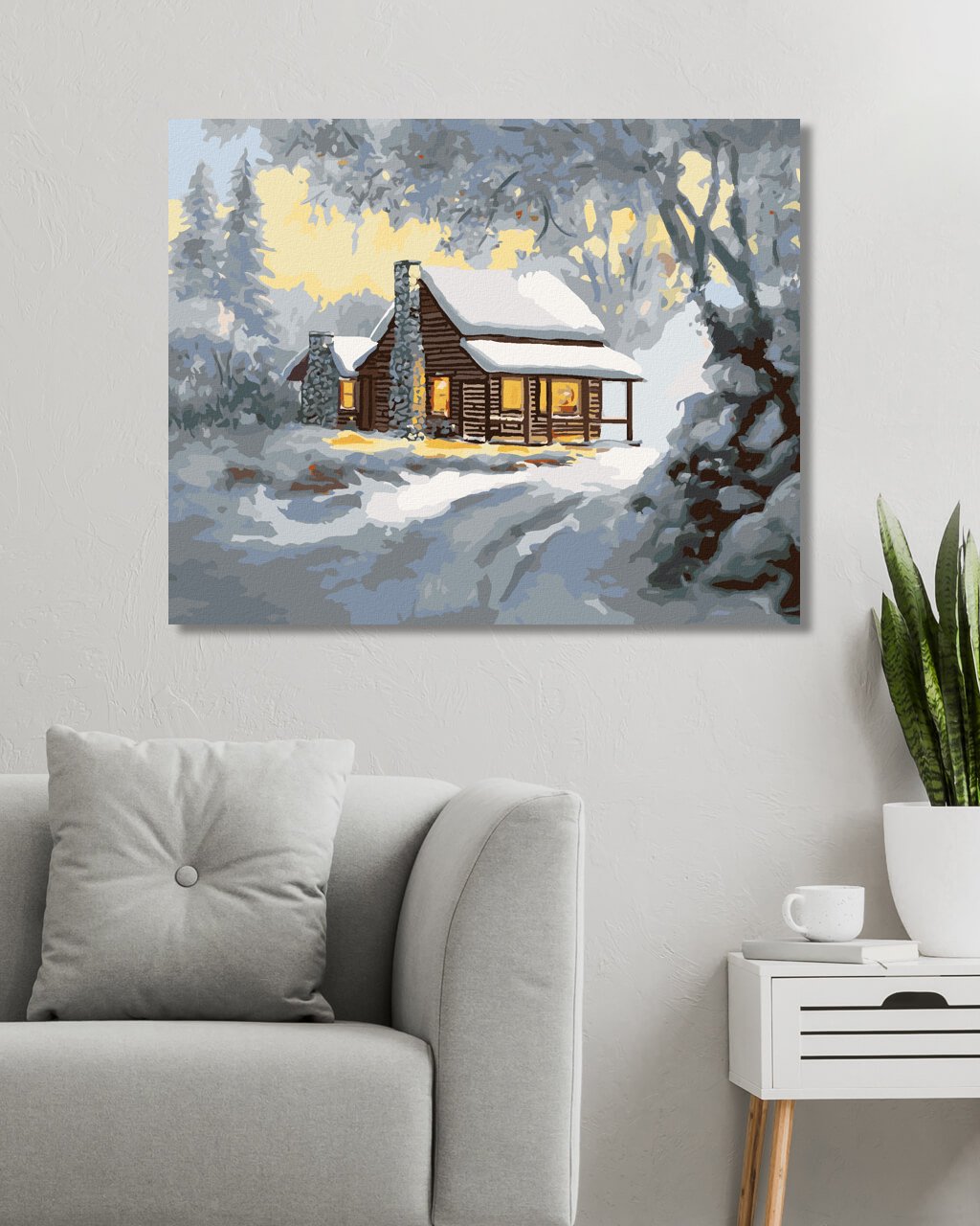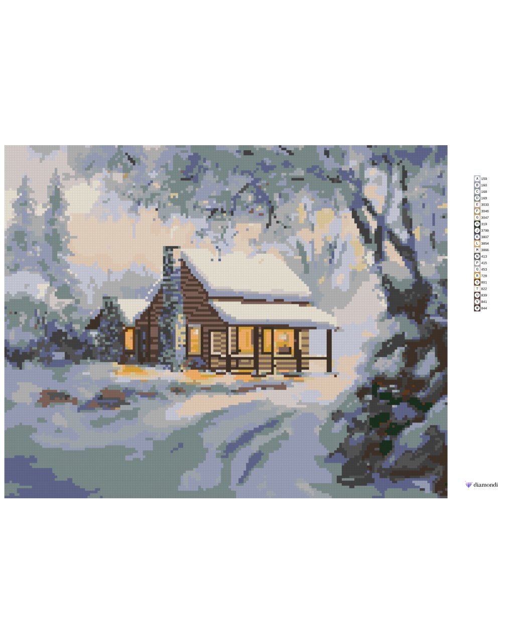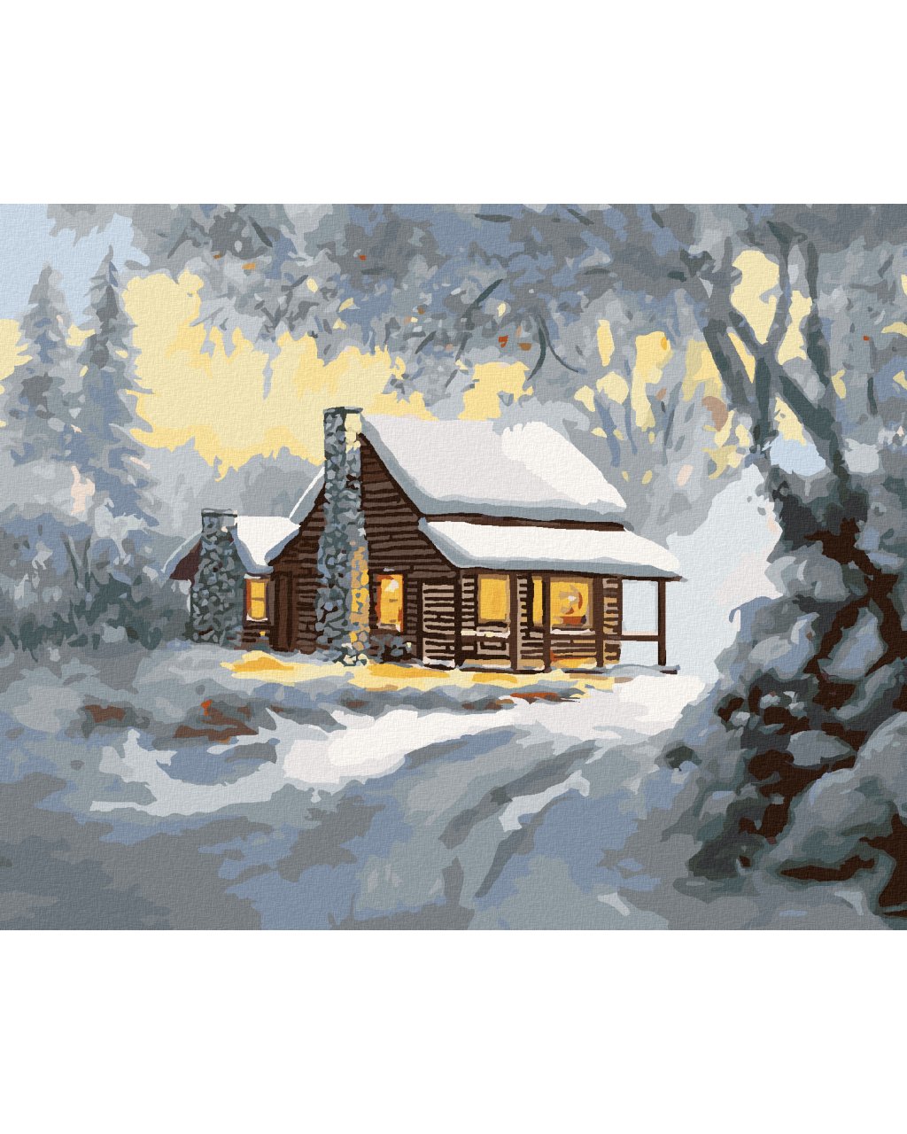 Diamantové maľovanie - ZASNEŽENÝ ZRUB PRI VÝCHODE SLNKA (D. RUSTY RUST)