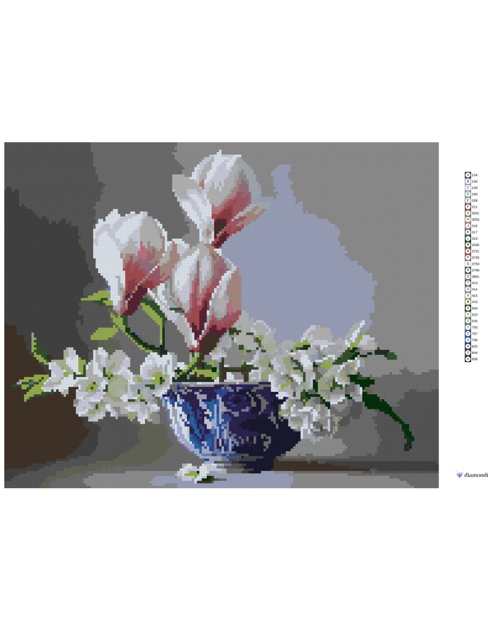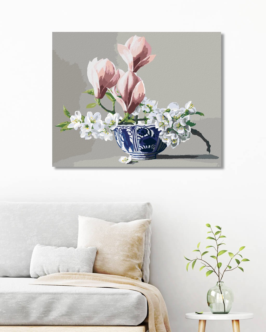 Diamantové maľovanie - ZATÍŠI KVETY JABLONE A MAGNÓLIE V PORCELÁNOVEJ MISE (PIETER WAGEMANS)