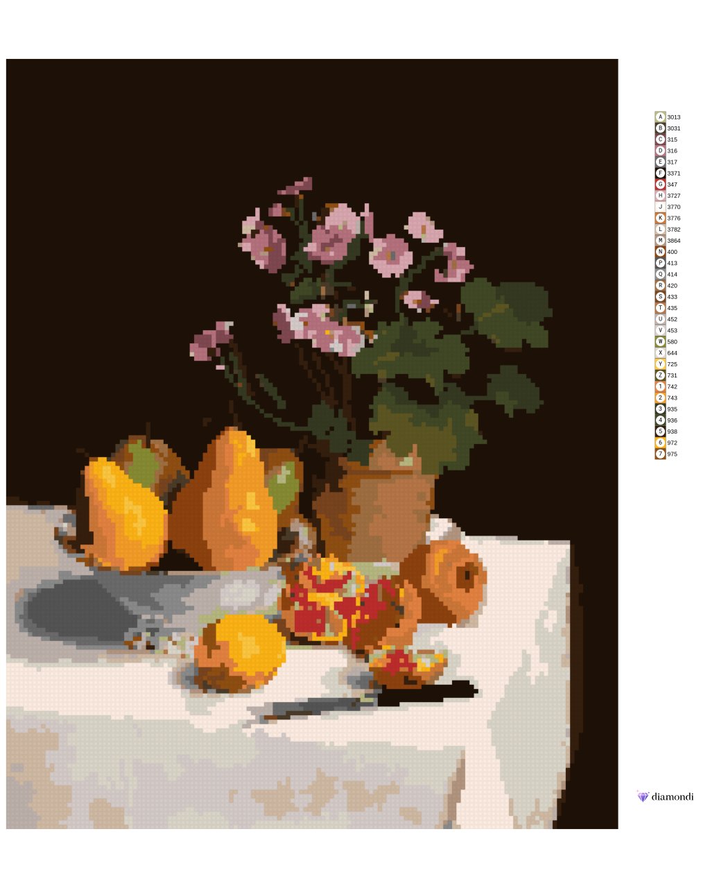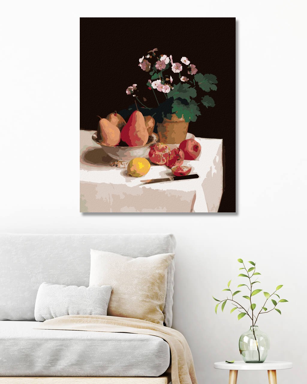Diamantové maľovanie - ZÁTIŠIE, PRVOSIENKY, HRUŠKY A GRANÁTOVÉ JABLKÁ (HENRI FANTIN-LATOUR)