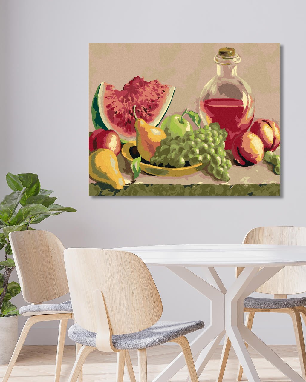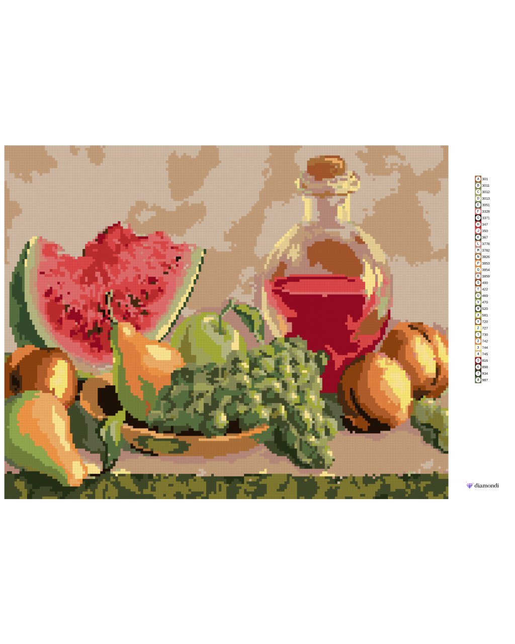 Diamantové maľovanie - ZÁTIŠIE S BROSKYŇAMI, HROZNOM A MELÓNOM