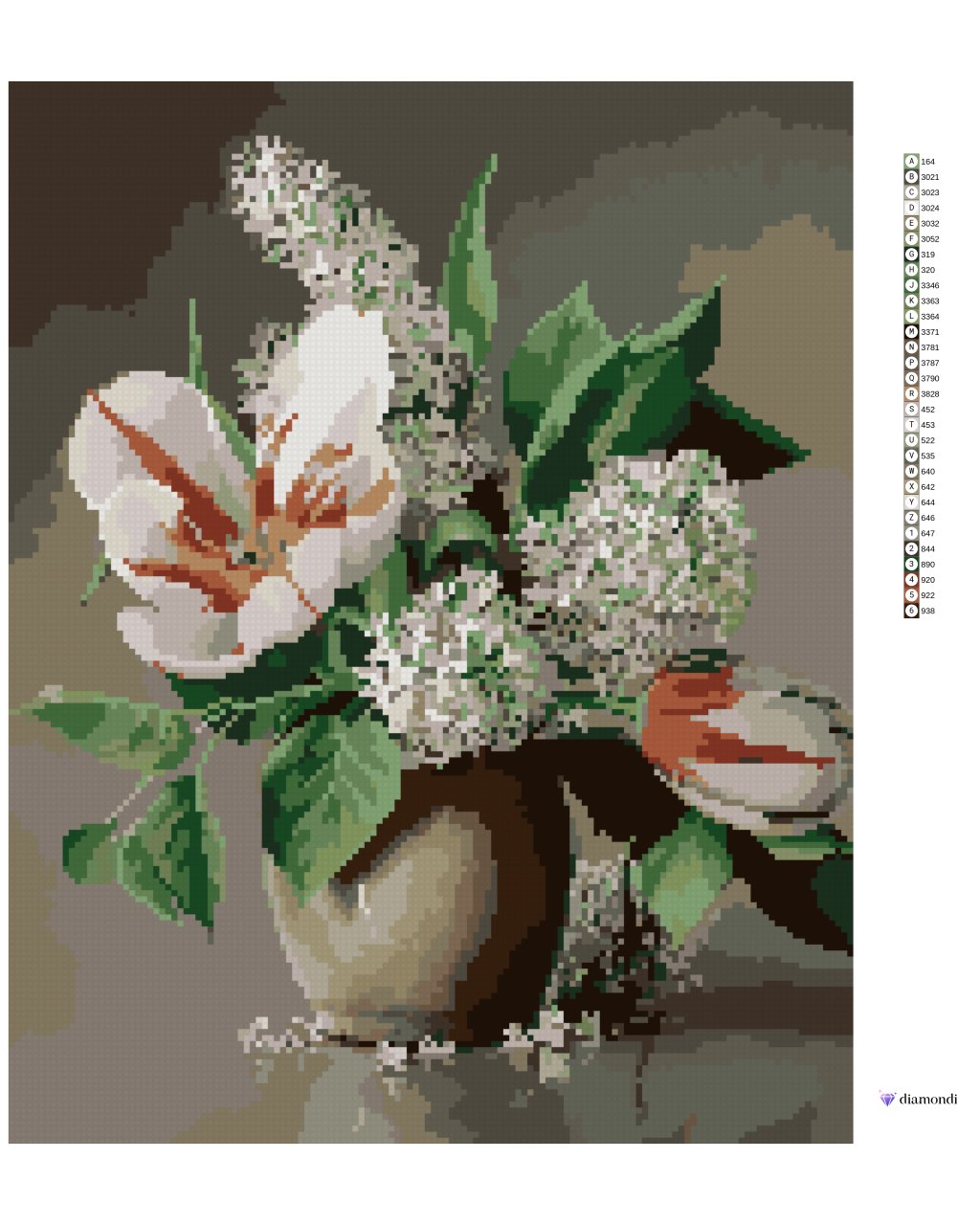 Diamantové maľovanie - ZÁTIŠIE TULIPÁN A ORGOVÁN V KERAMICKOM KVETINÁČI (PIETER WAGEMANS)