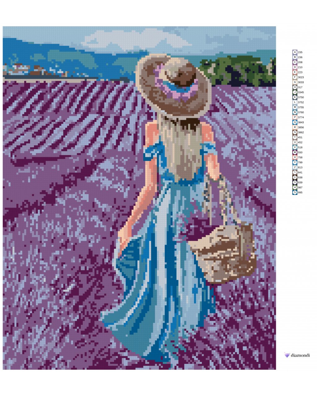 Diamantové maľovanie - ŽENA V MODRÝCH ŠATÁCH V LEVANDUĽOVOM POLI