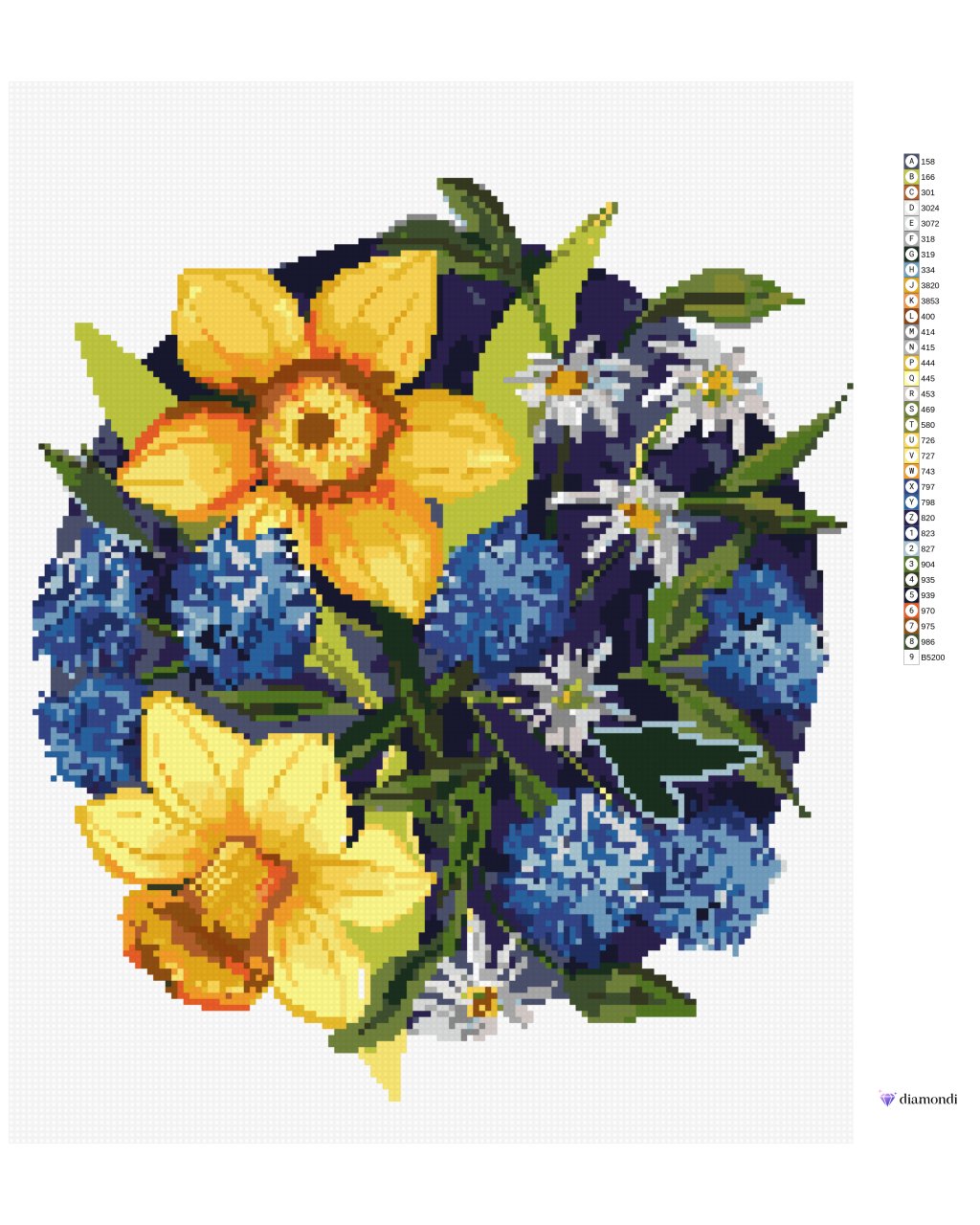 Diamantové maľovanie - ŽLTÉ A MODRÉ NARCISY (ALEXANDRIA GILBERT)