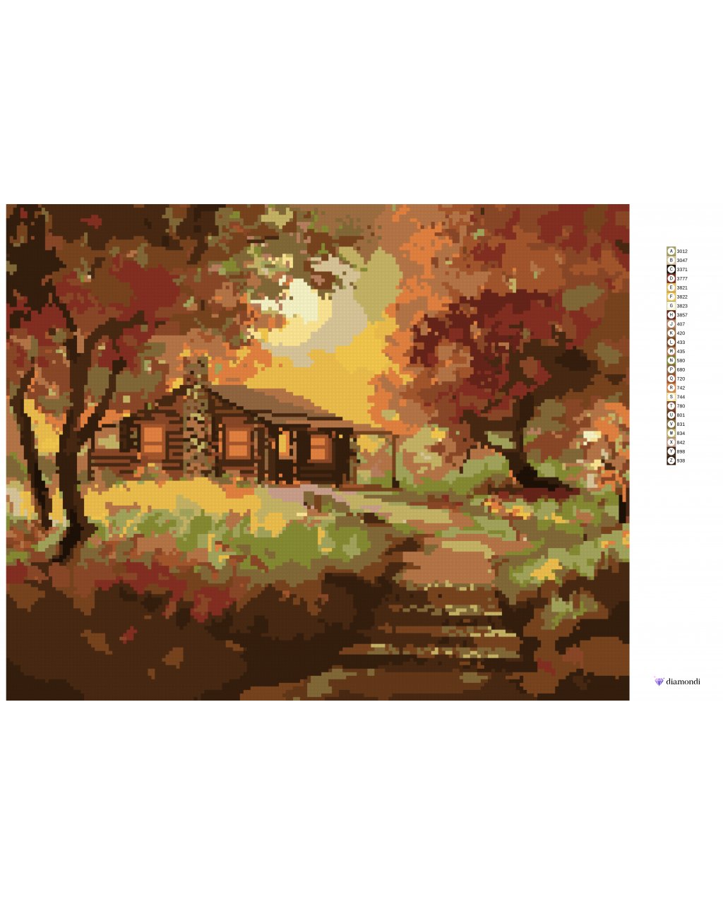 Diamantové maľovanie - ZRUB PRI ZÁPADE SLNKA NA JESEŇ (D. RUSTY RUST)