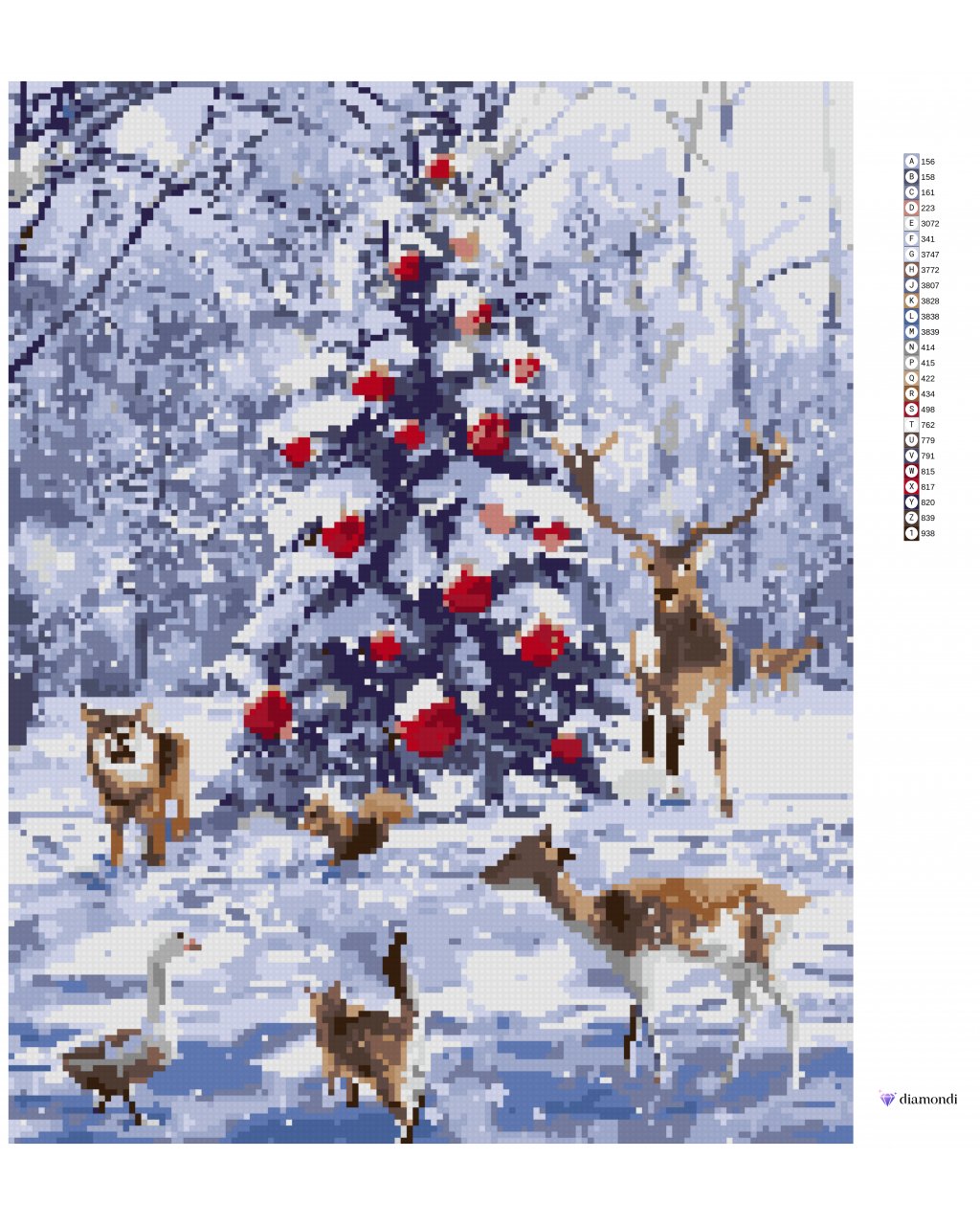 Diamantové maľovanie - ZVIERATÁ PRI VIANOČNOM STROMČEKU