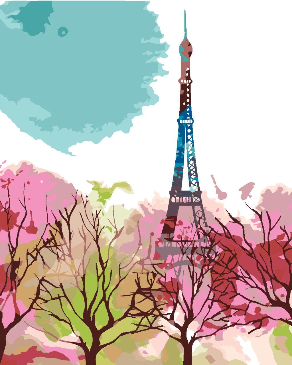 Maľovanie podľa čísel - ABSTRAKTNÁ EIFFELOVA VEŽA A STROMY