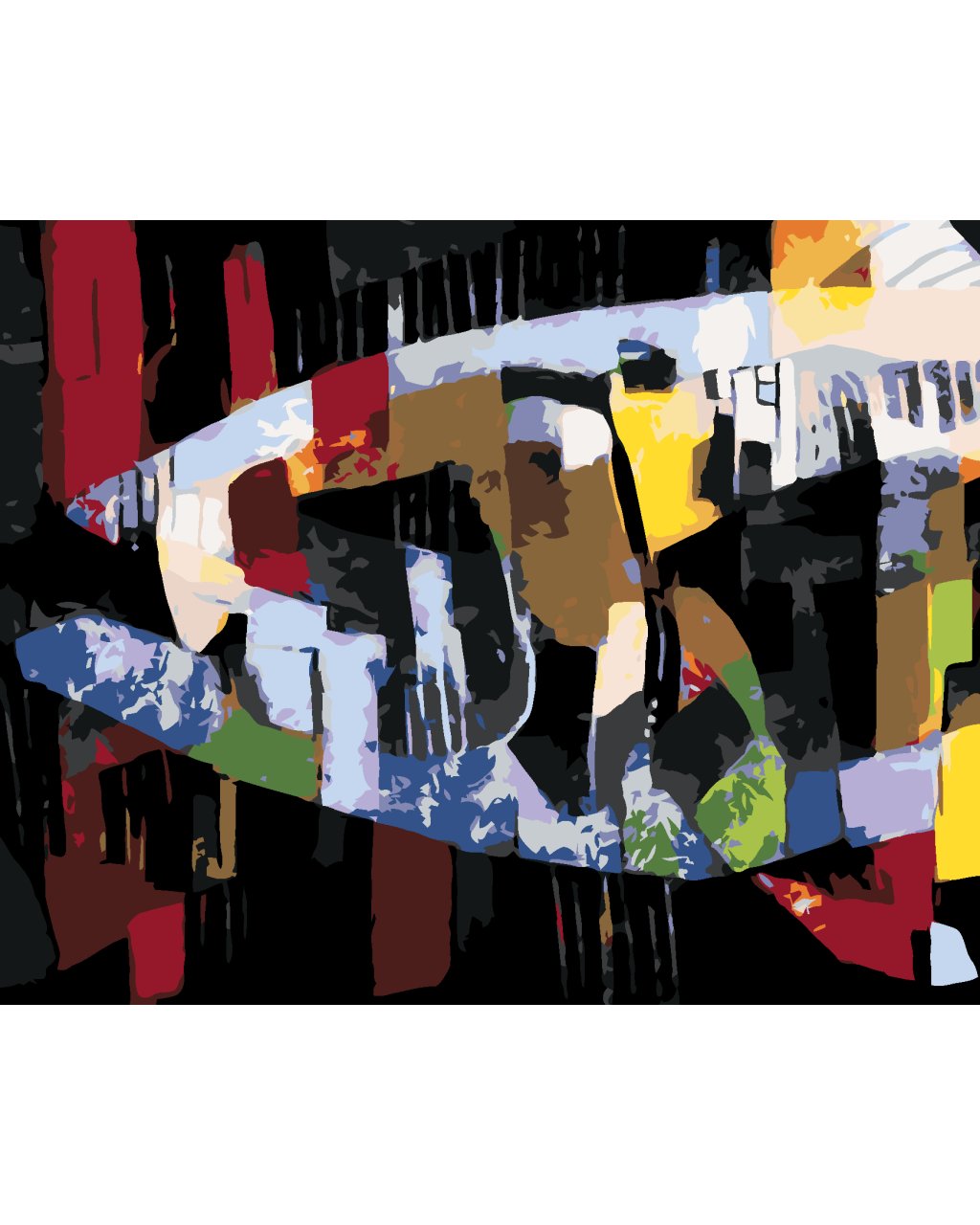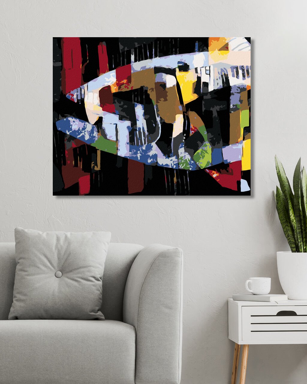Maľovanie podľa čísel - ABSTRAKTNÁ RYBA NA ČIERNOM POZADÍ