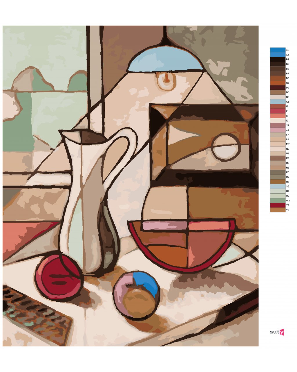 Maľovanie podľa čísel - ABSTRAKTNÉ ZÁTIŠIE S DŽBÁNOM A OVOCÍM