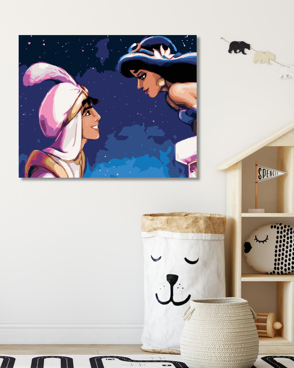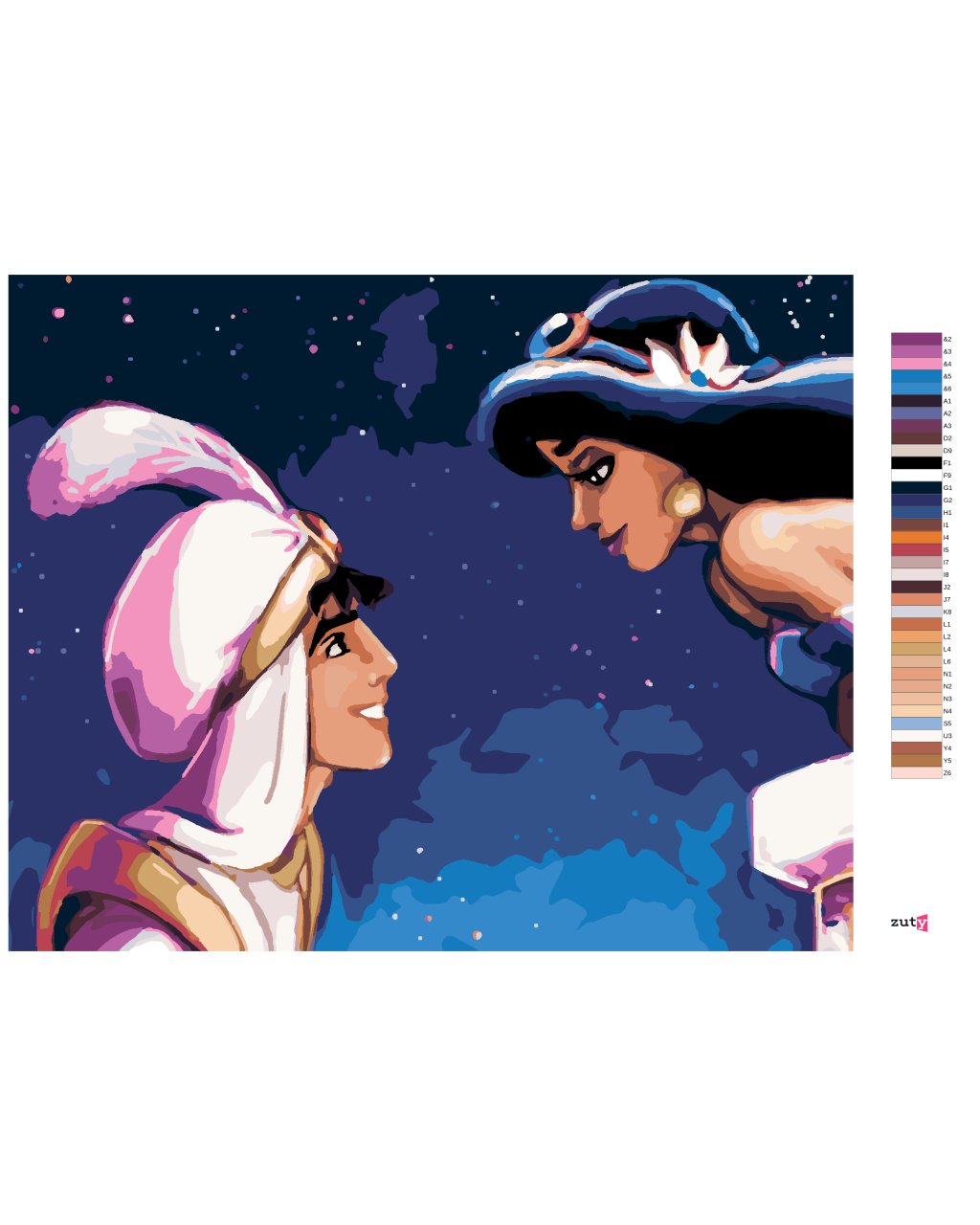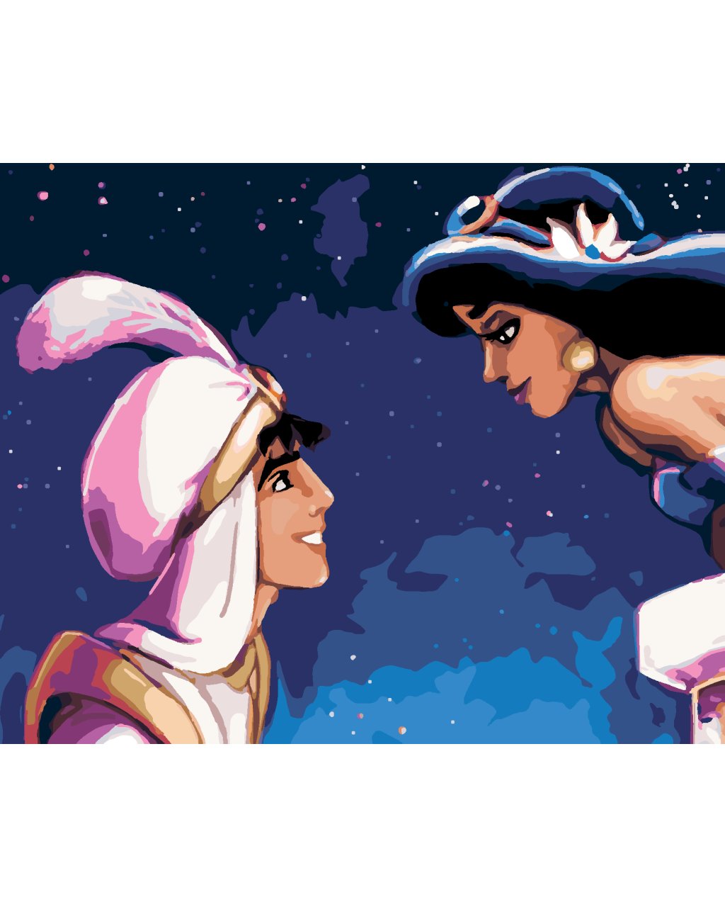 Maľovanie podľa čísel - ALADDIN A JAZMÍNA NA BALKÓNE
