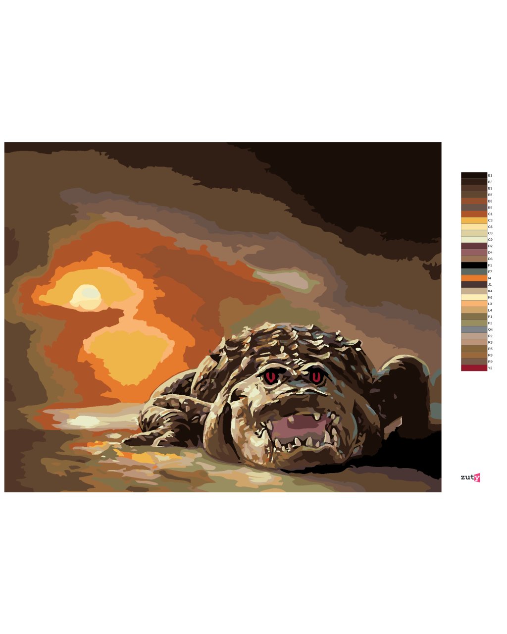 Maľovanie podľa čísel - ALIGÁTOR, TEMNÉ OČI A ZÁPAD SLNKA (D. RUSTY RUST)