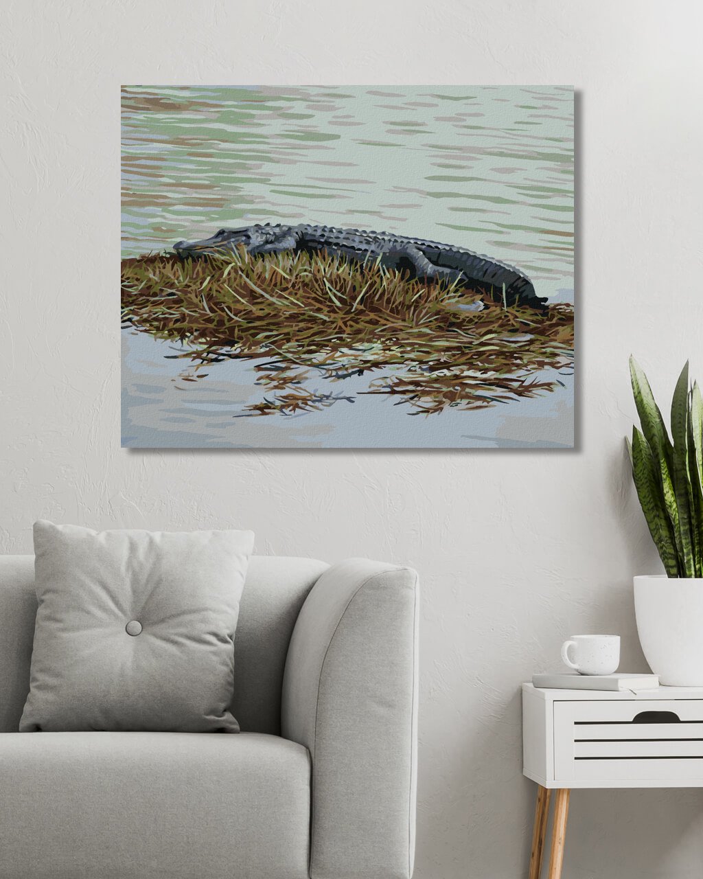 Maľovanie podľa čísel - ALIGÁTOR LEŽIACI NA TRÁVE VO VODE (D. RUSTY RUST)