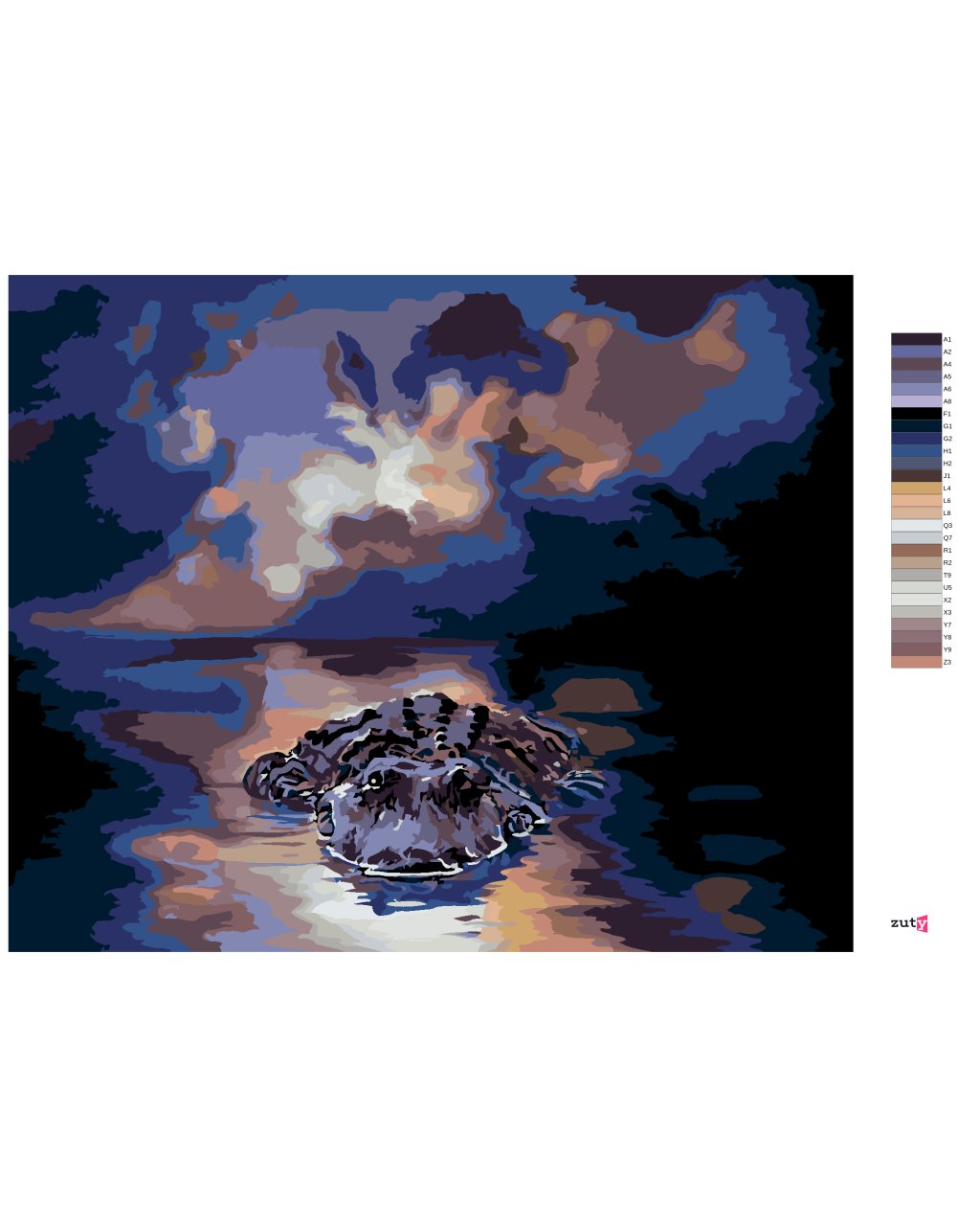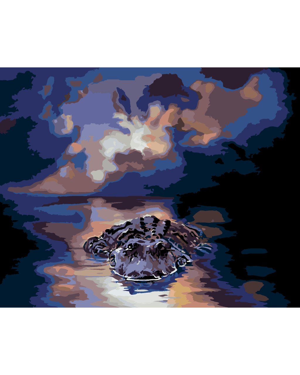 Maľovanie podľa čísel - ALIGÁTOR VO VODE A MESIAC (D. RUSTY RUST)