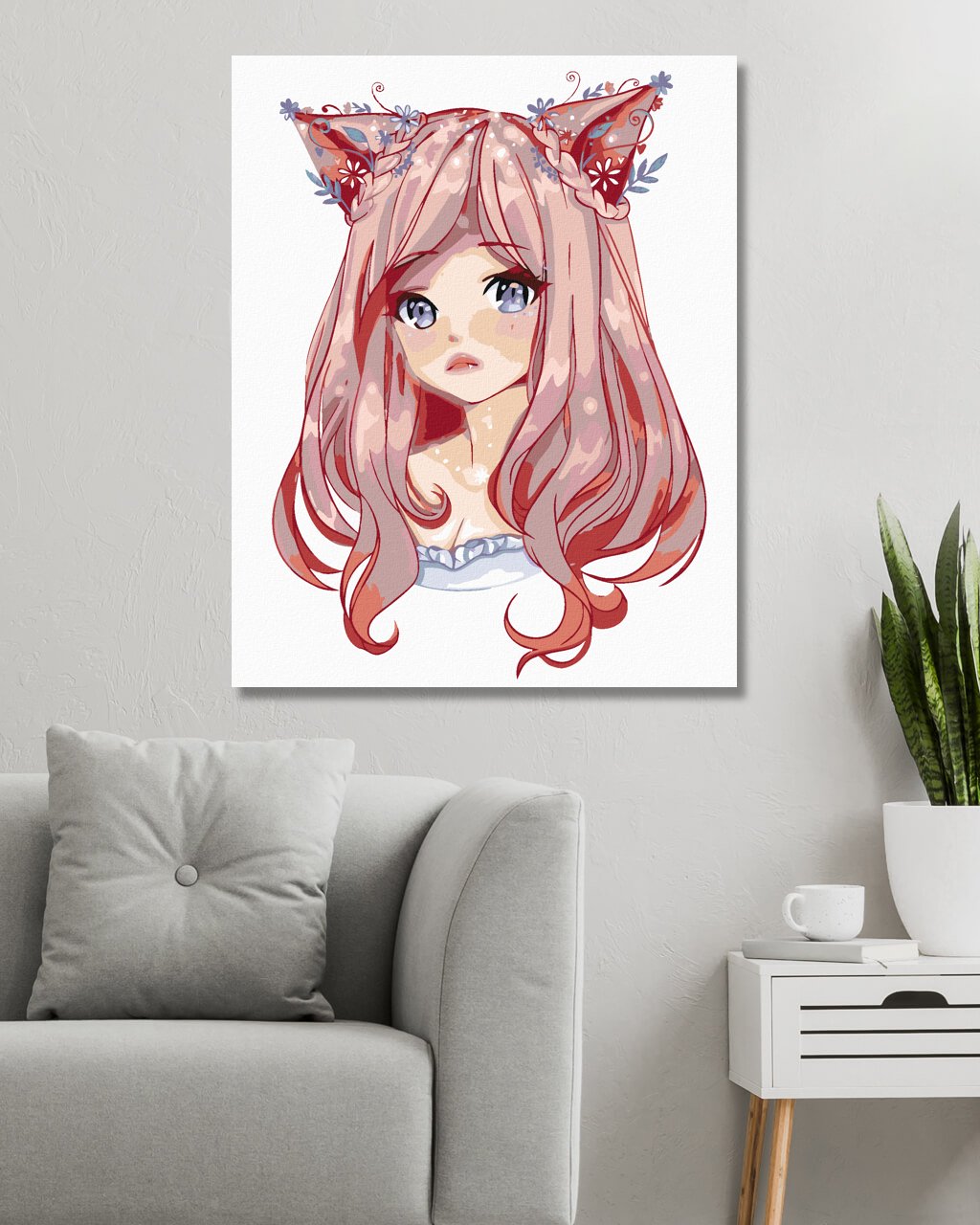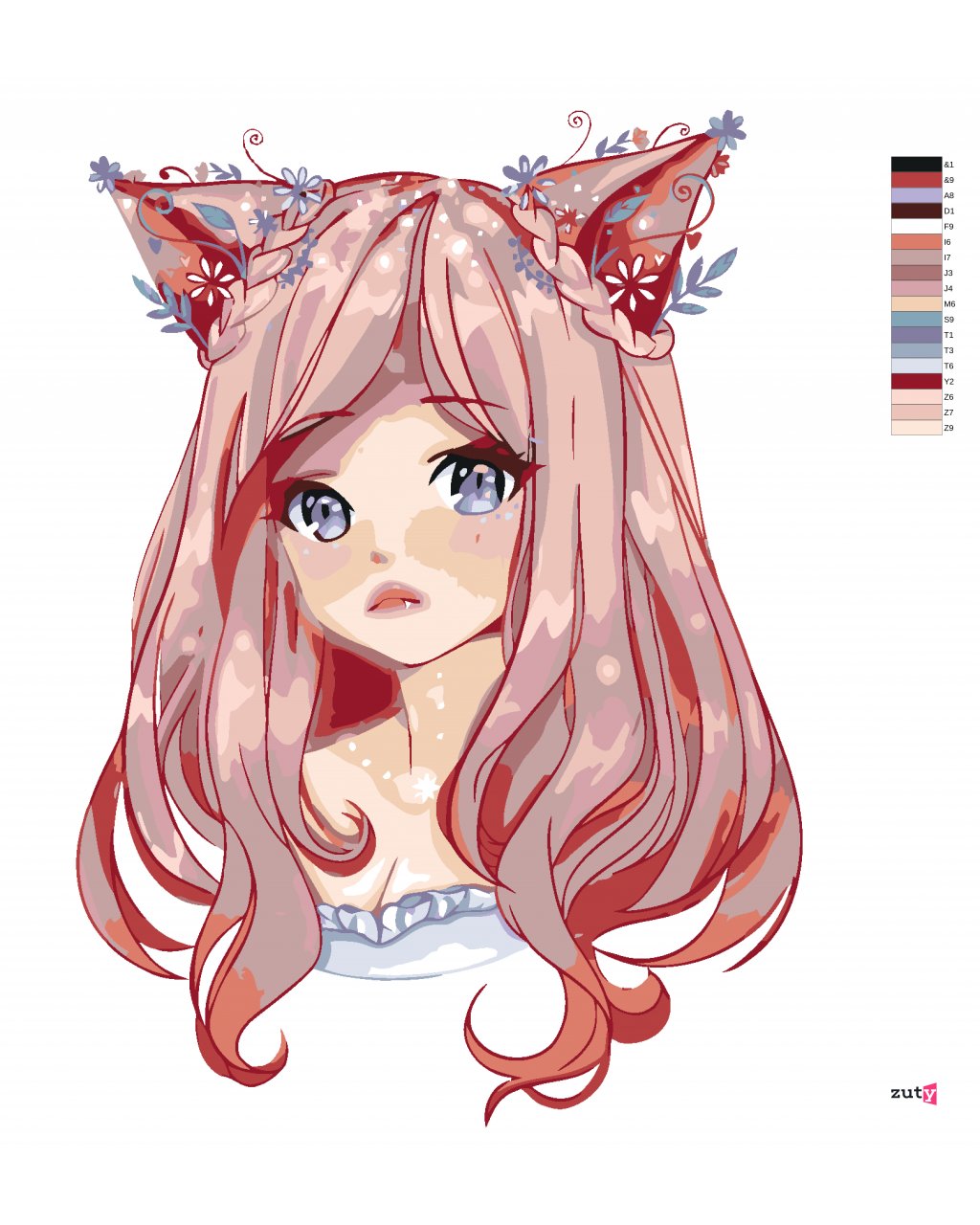 Maľovanie podľa čísel - ANIME DIEVČA S RUŽOVÝMI VLASMI