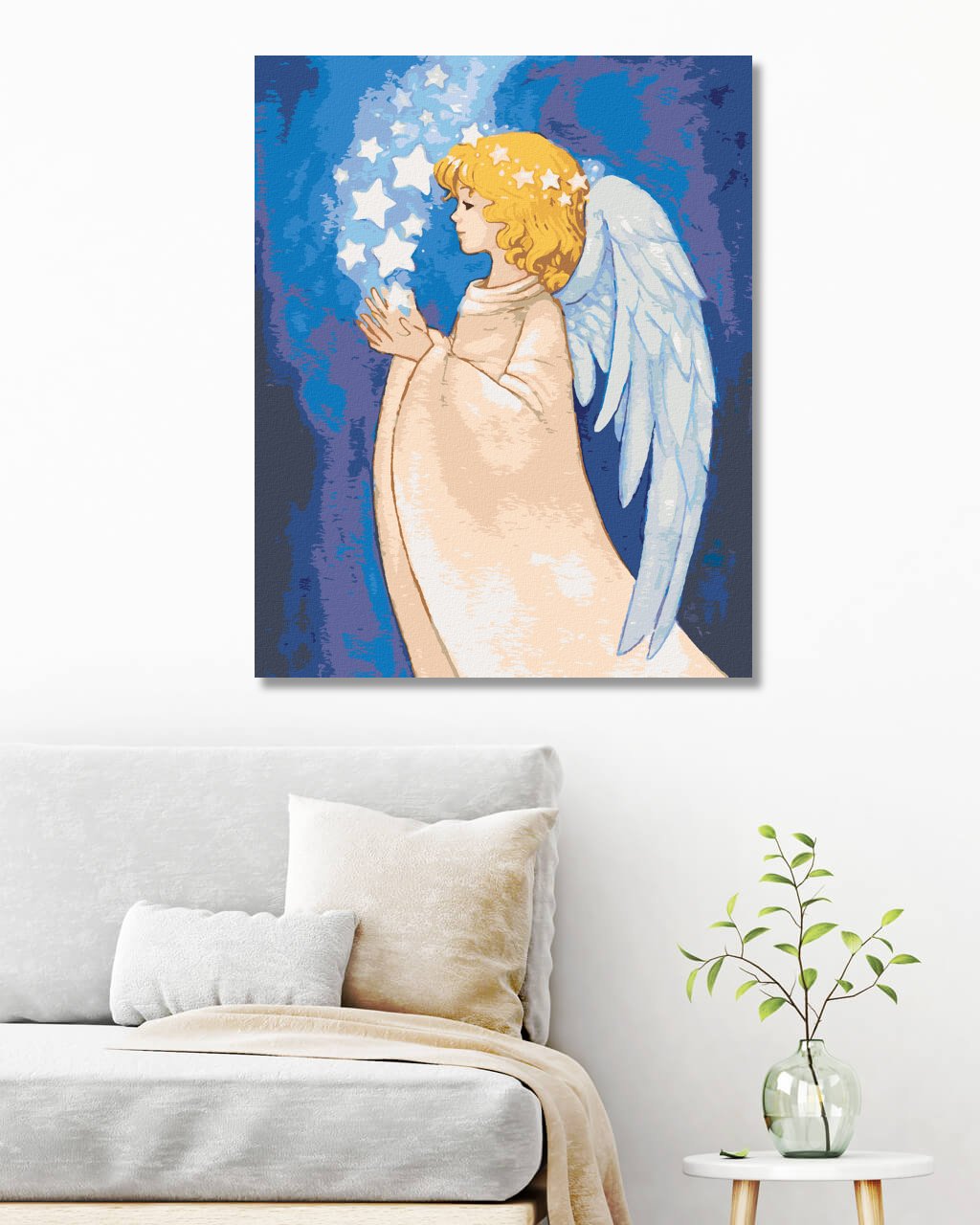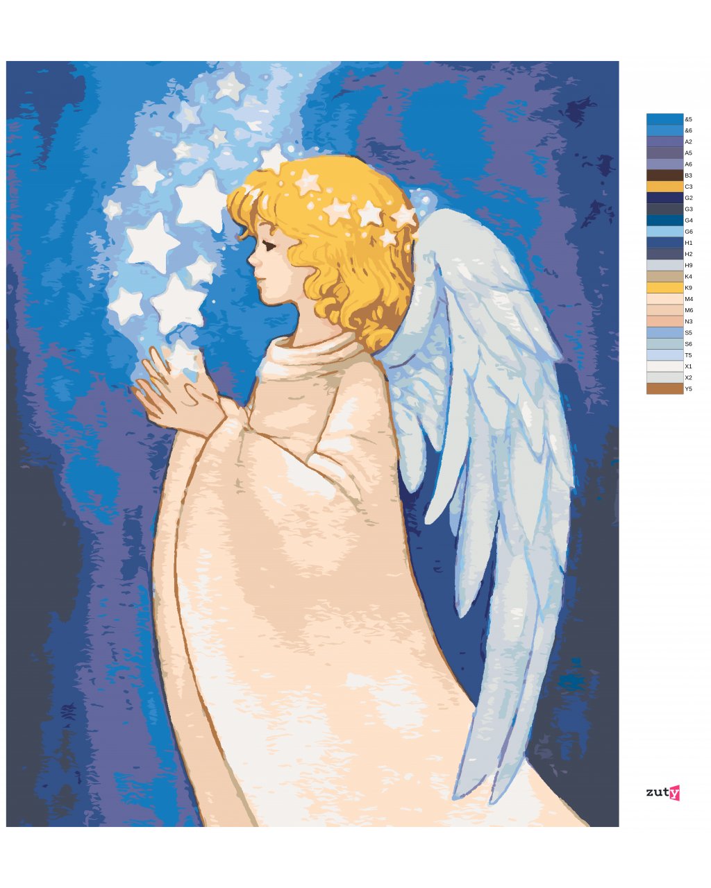 Maľovanie podľa čísel - ANJEL A ŽIARIACE HVIEZDY