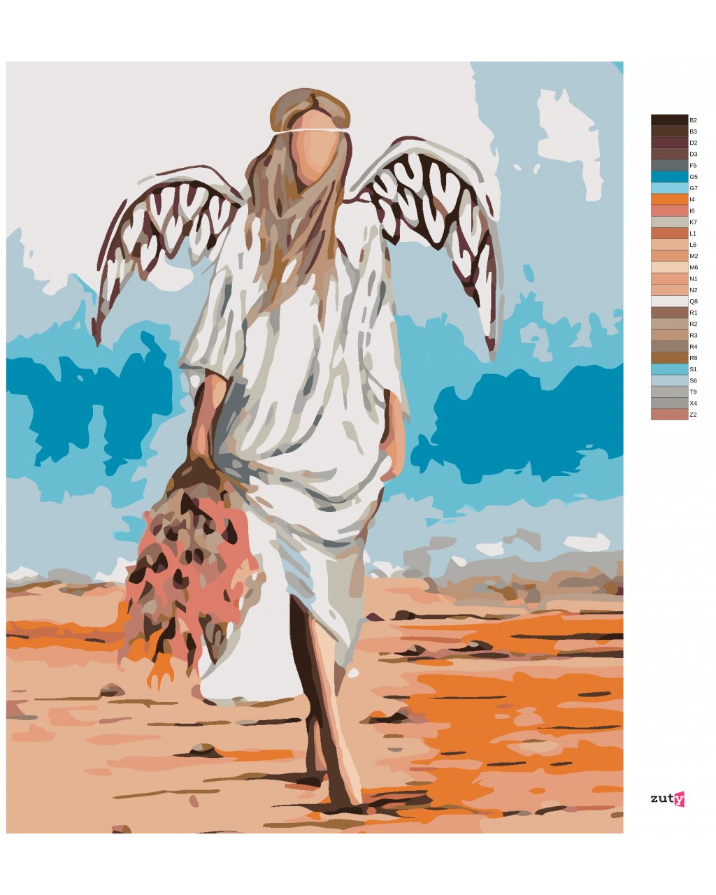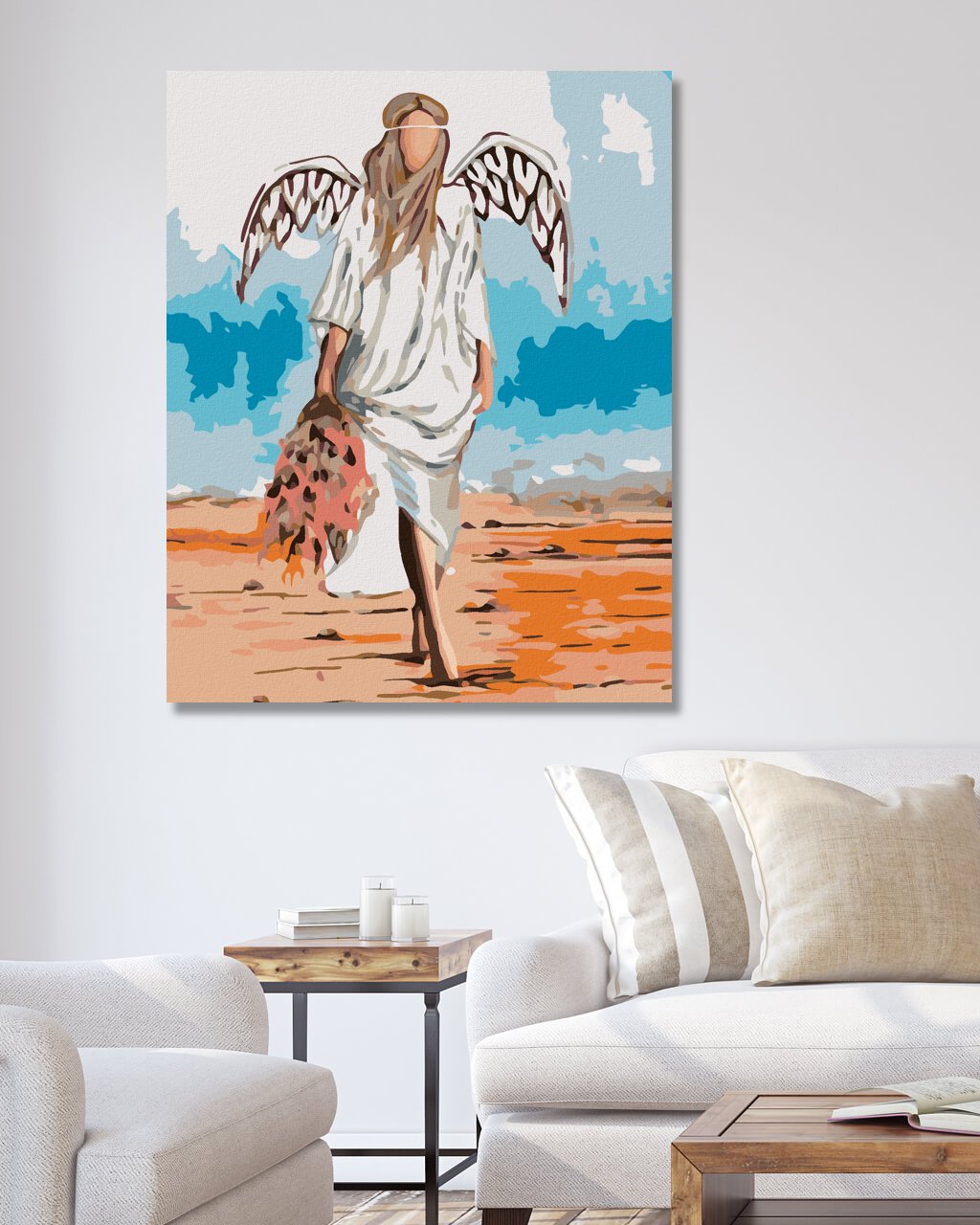Maľovanie podľa čísel - ANJEL V PIESKU S KVETOM