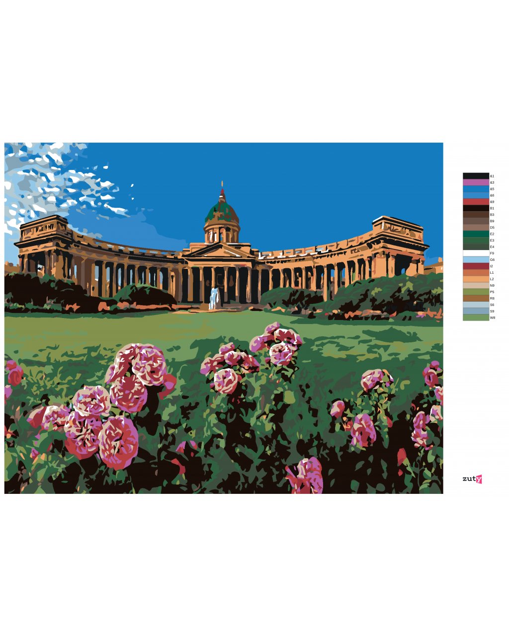 Maľovanie podľa čísel - ANTICKÁ STAVBA V ROZKVITNUTEJ ZÁHRADE