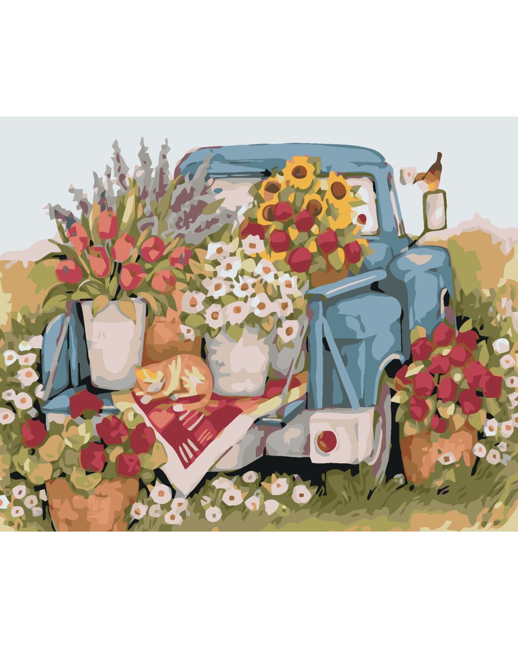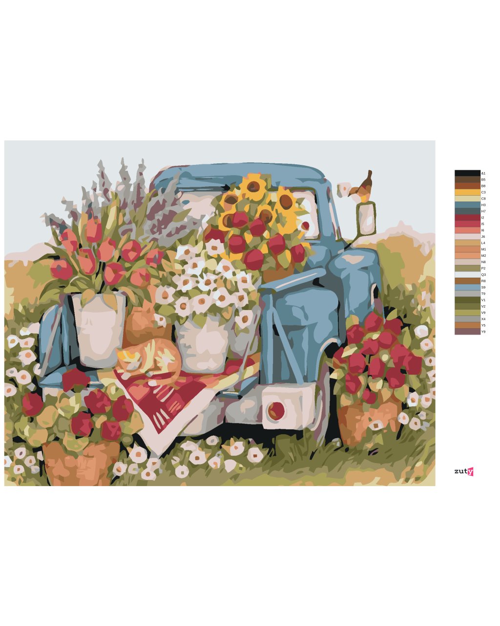 Maľovanie podľa čísel - AUTO PLNÉ KVETOV
