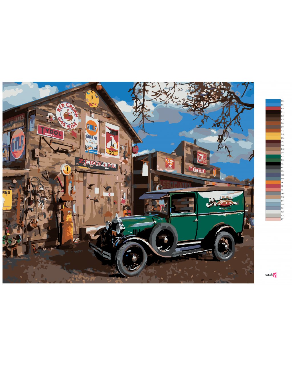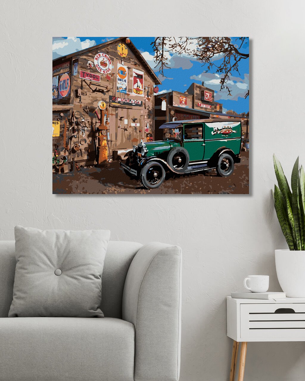 Maľovanie podľa čísel - AUTO VETERÁN PRI STODOLE (DENNIS FRATES)