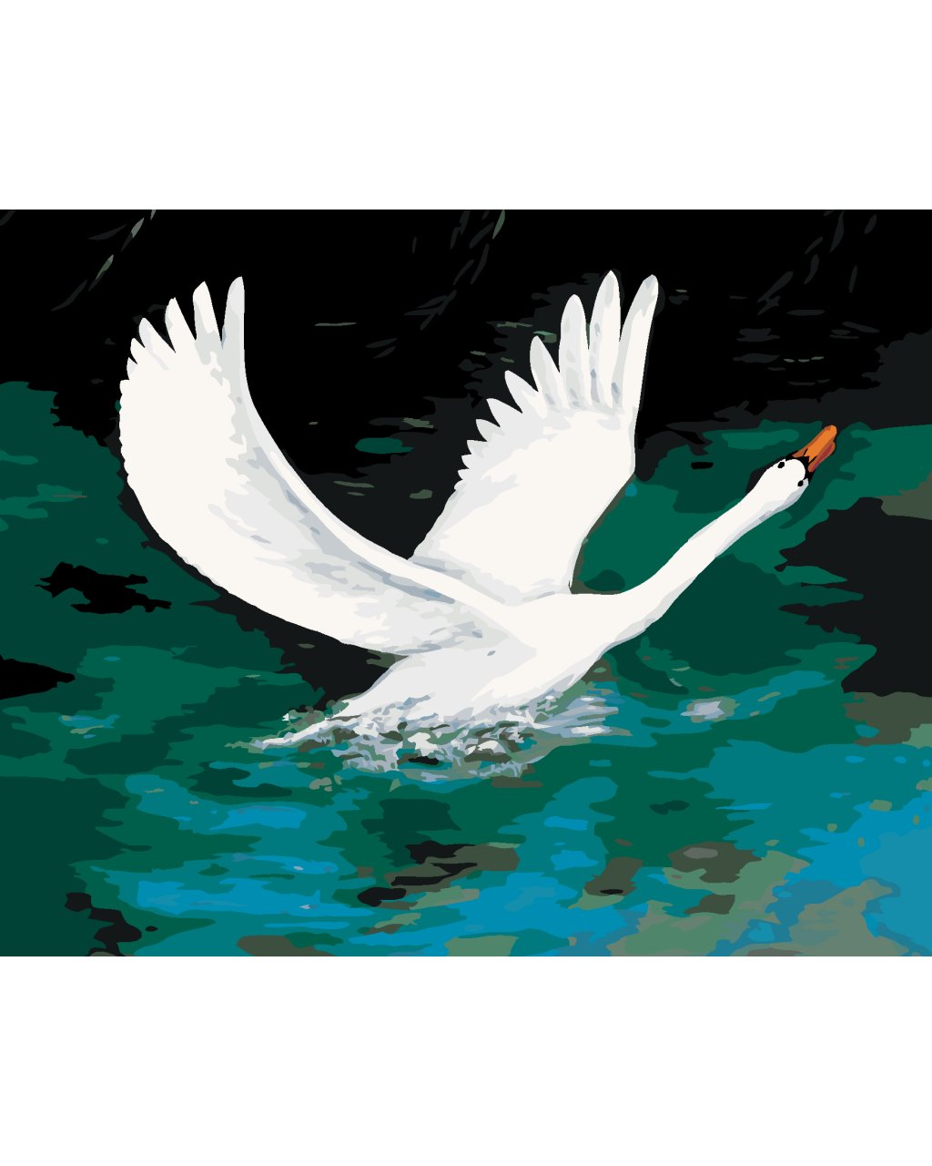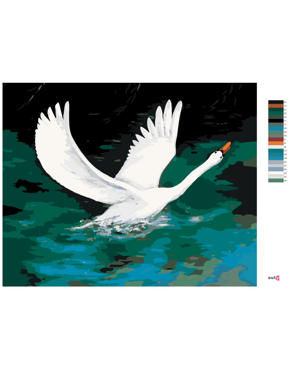 Maľovanie podľa čísel - BIELA LABUŤ NA ČIERNOM JAZERE