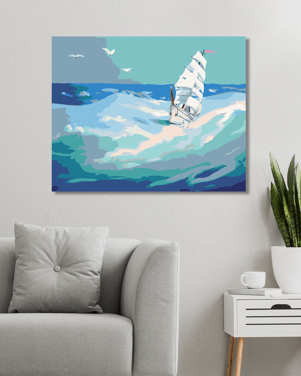 Maľovanie podľa čísel - BIELA PLACHETNICA NA DIVOKOM MORI (D. RUSTY RUST)
