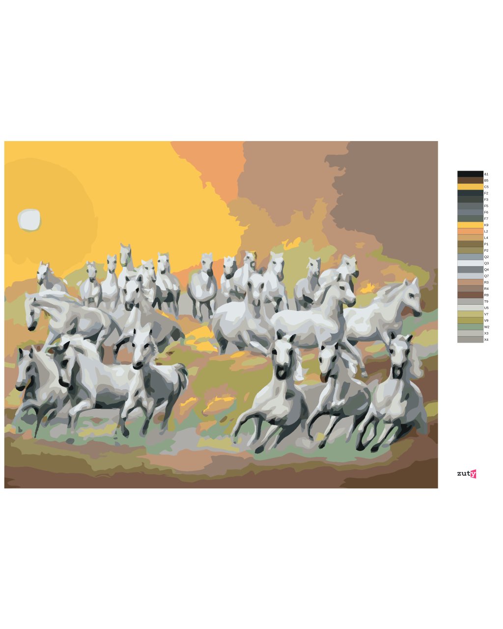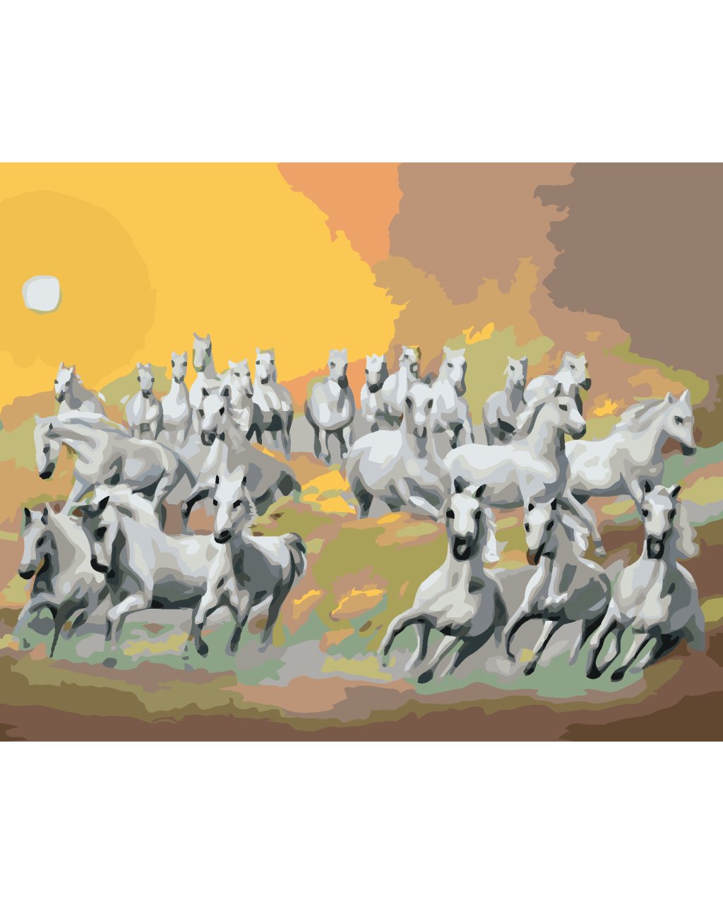 Maľovanie podľa čísel - BIELE KONE V MRAKOCH A SLNKO (D. RUSTY RUST)