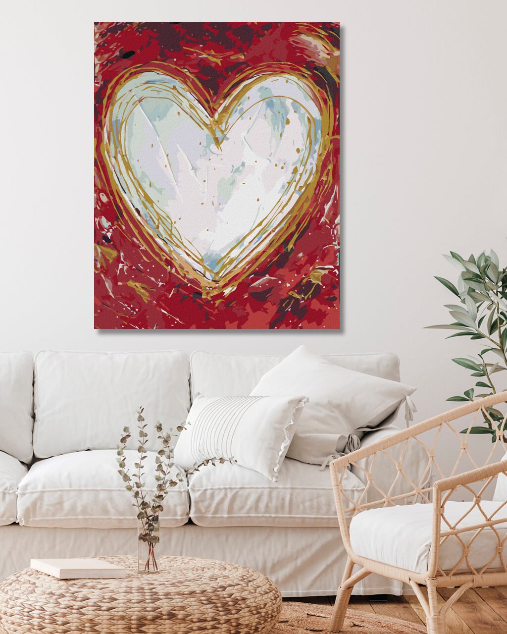 Maľovanie podľa čísel - BIELE SRDCE NA ČERVENOM POZADÍ (HALEY BUSH)