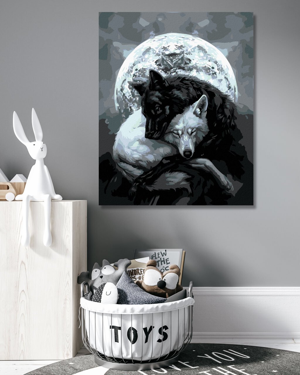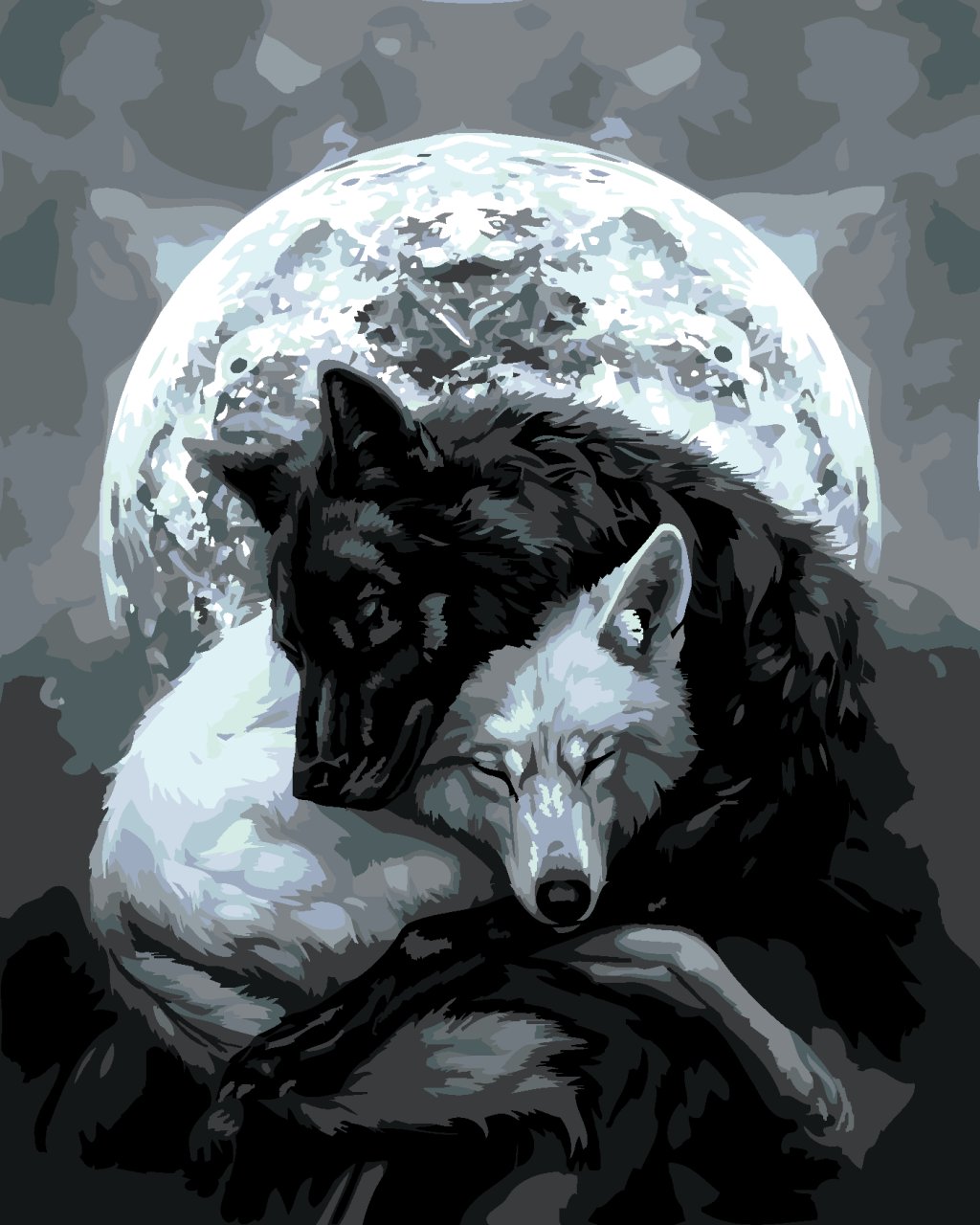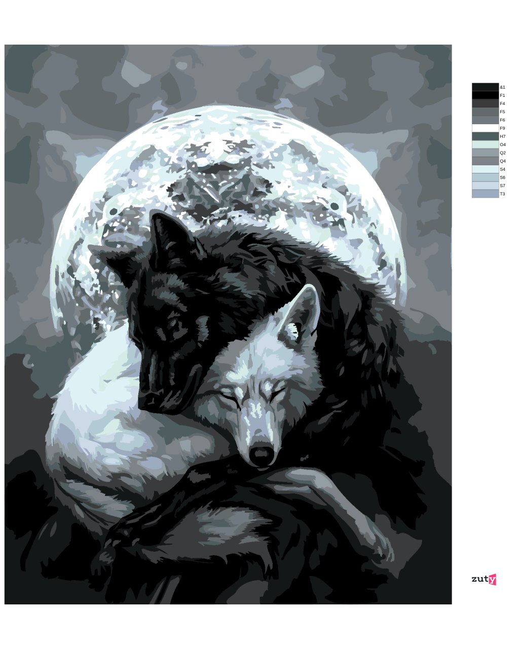 Maľovanie podľa čísel - BIELY A ČIERNY VLK A SPLN