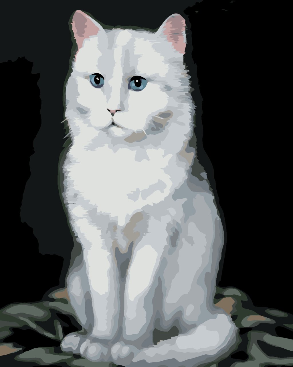 Maľovanie podľa čísel - BIELY KOCÚR 2 (MYROSLAVA VOLOSCHUK)
