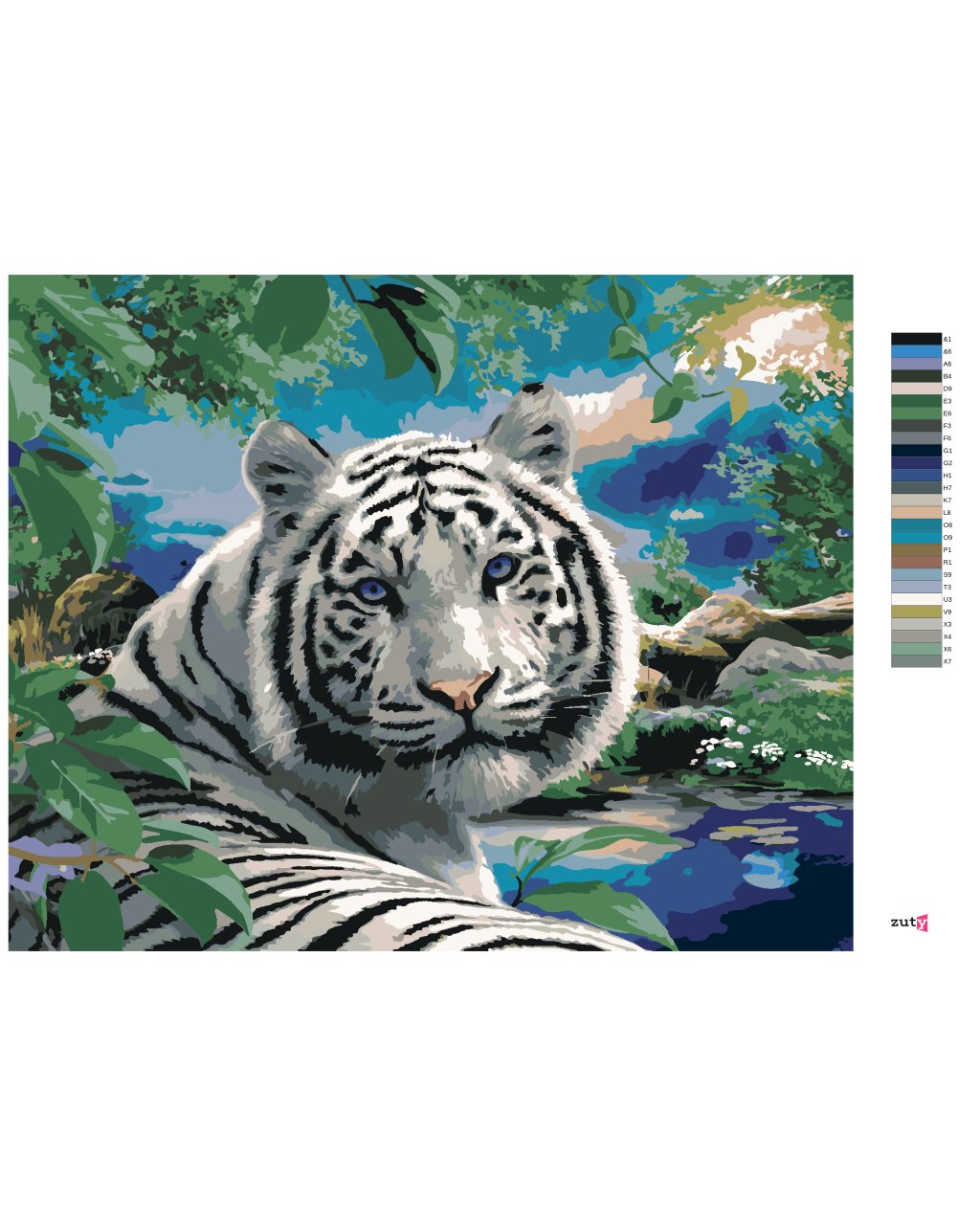 Maľovanie podľa čísel - BIELY TIGER A DIVOKÁ PRÍRODA (HOWARD ROBINSON)