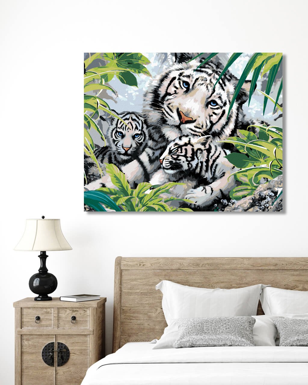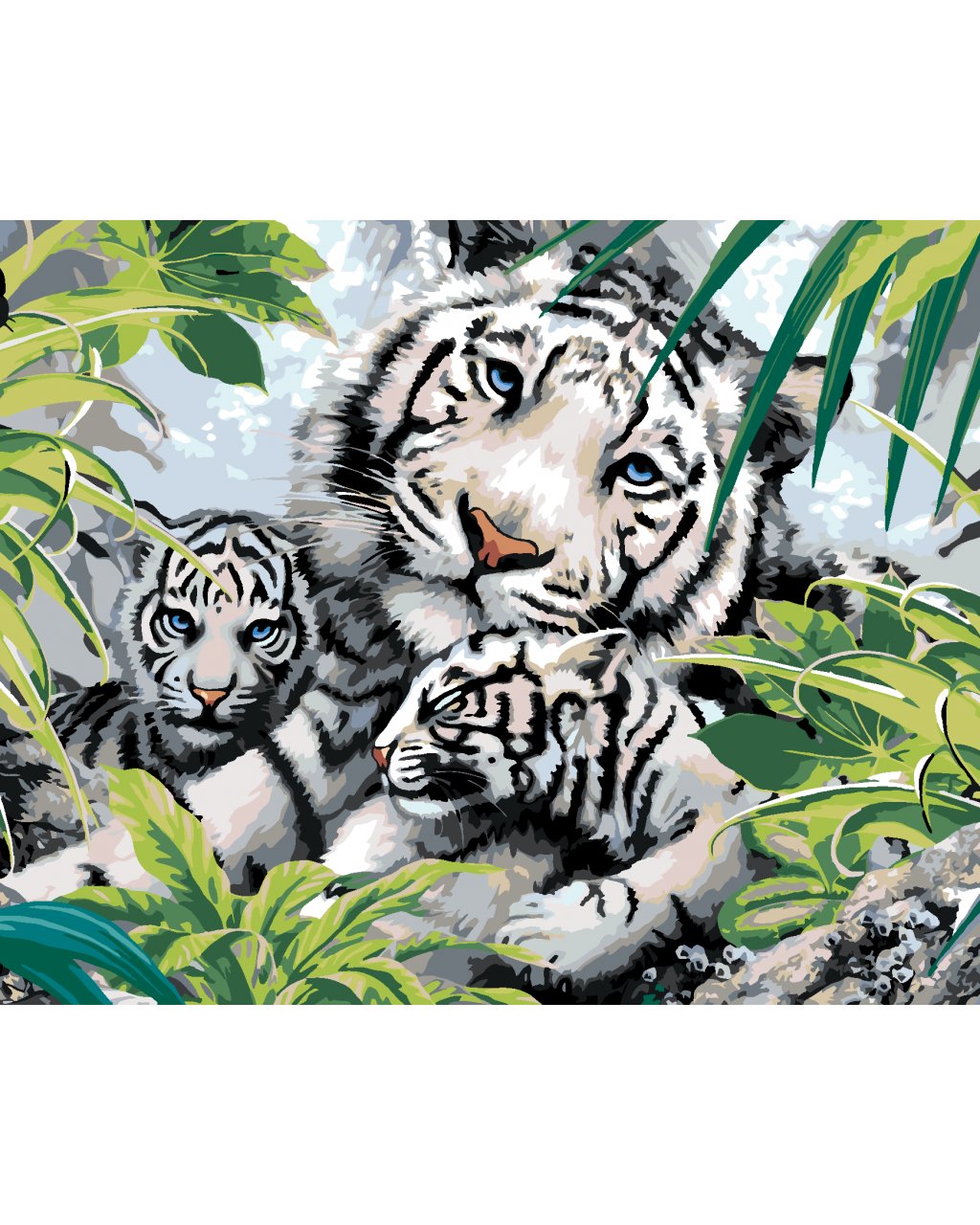 Maľovanie podľa čísel - BIELY TIGER A DVE MLÁĎATÁ (HOWARD ROBINSON)