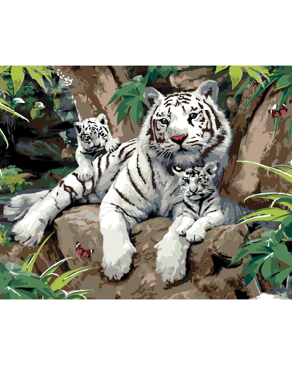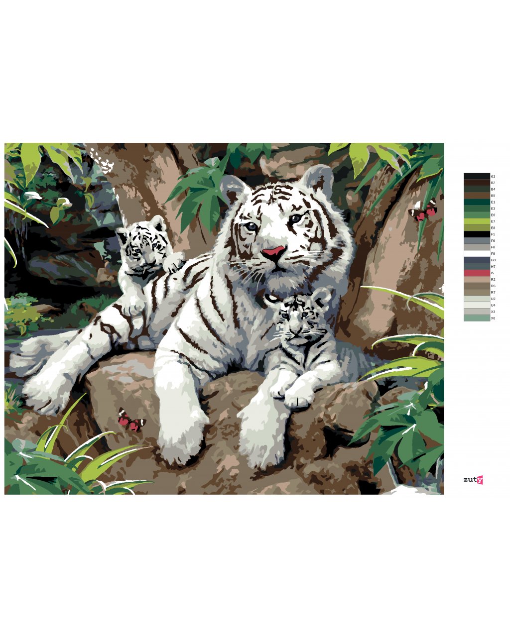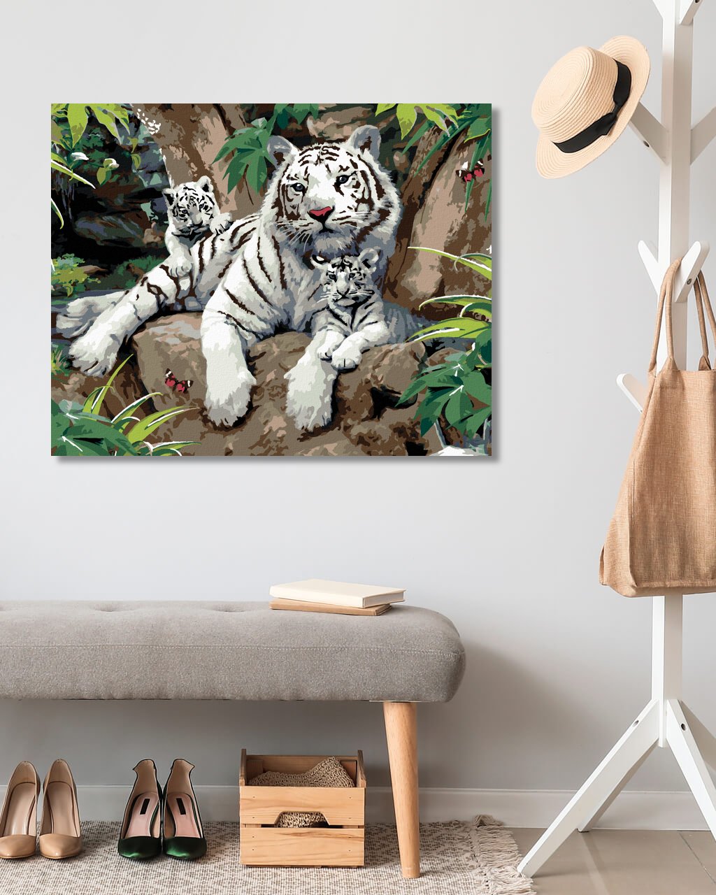 Maľovanie podľa čísel - BIELY TIGER S MLÁĎATAMI NA KAMENI (HOWARD ROBINSON)
