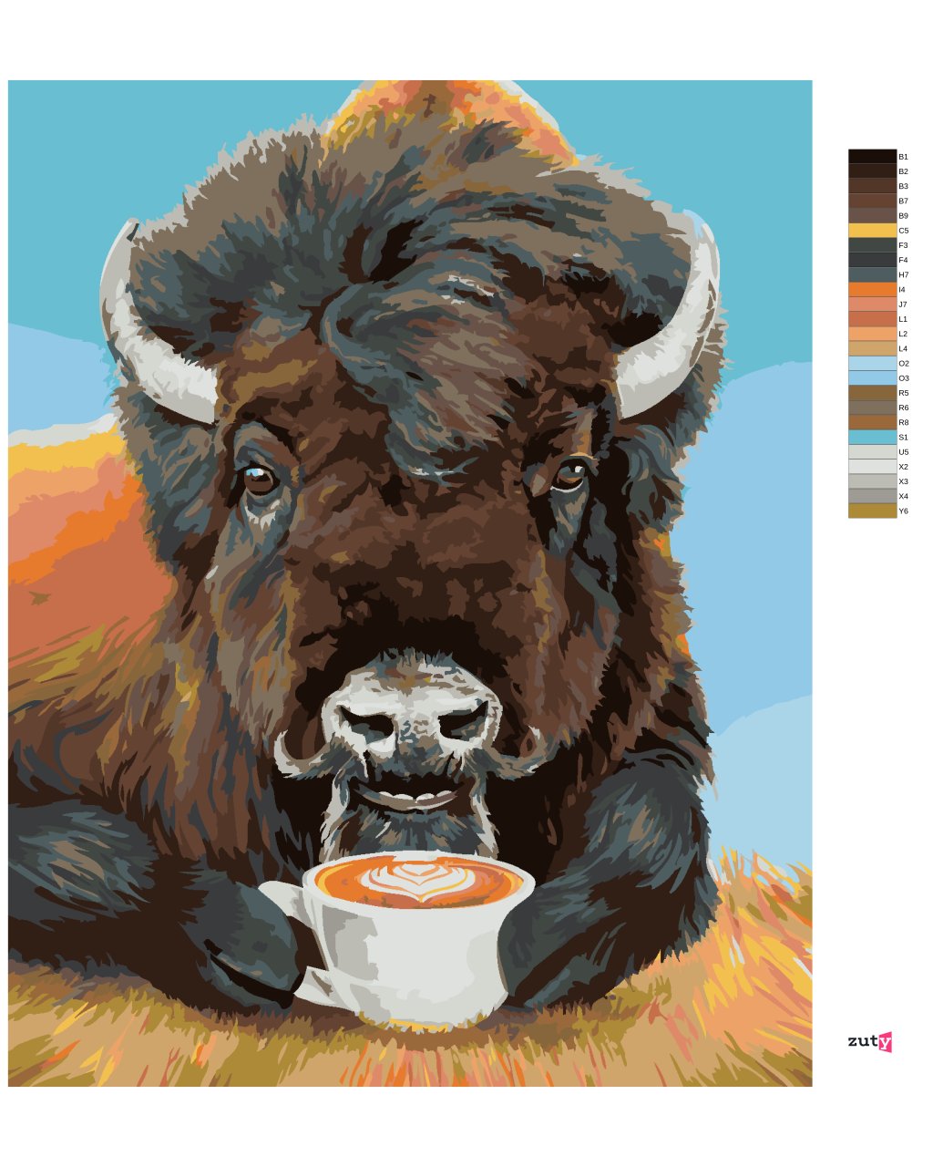 Maľovanie podľa čísel - BIZÓN A KÁVA (HOLLY SIMENTAL)