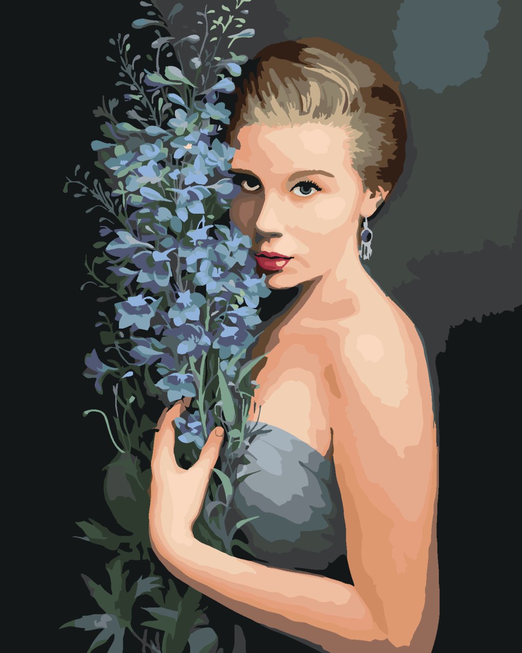 Maľovanie podľa čísel - BLONĎATÁ ŽENA A MODRÉ KVETY (PIETER WAGEMANS)