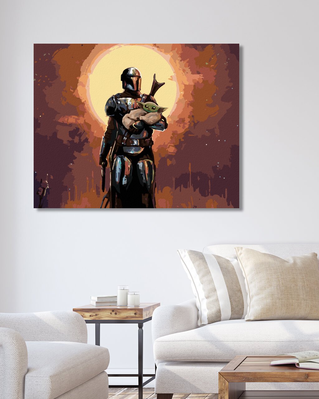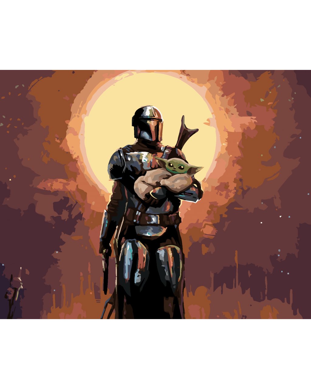 Maľovanie podľa čísel - MANDALORIAN S BABY YODOU V NÁRUČÍ