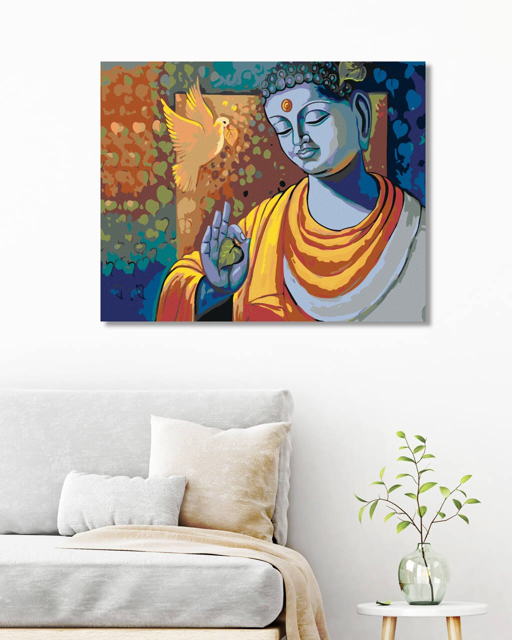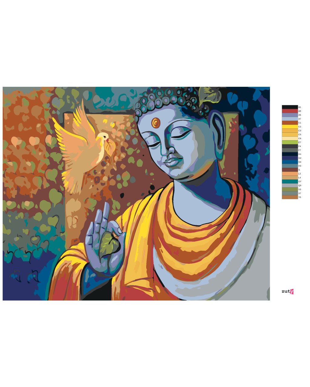 Maľovanie podľa čísel - BUDDHA A HOLUBICA