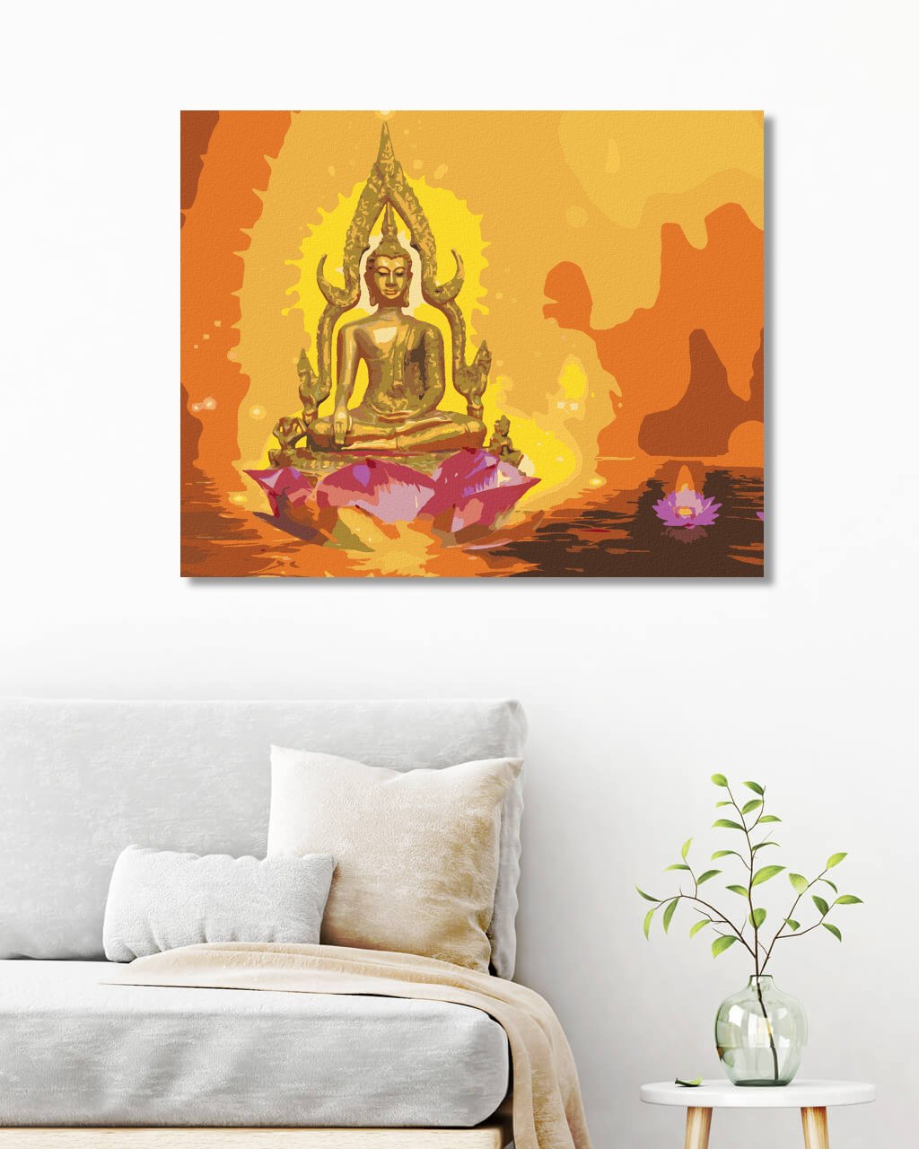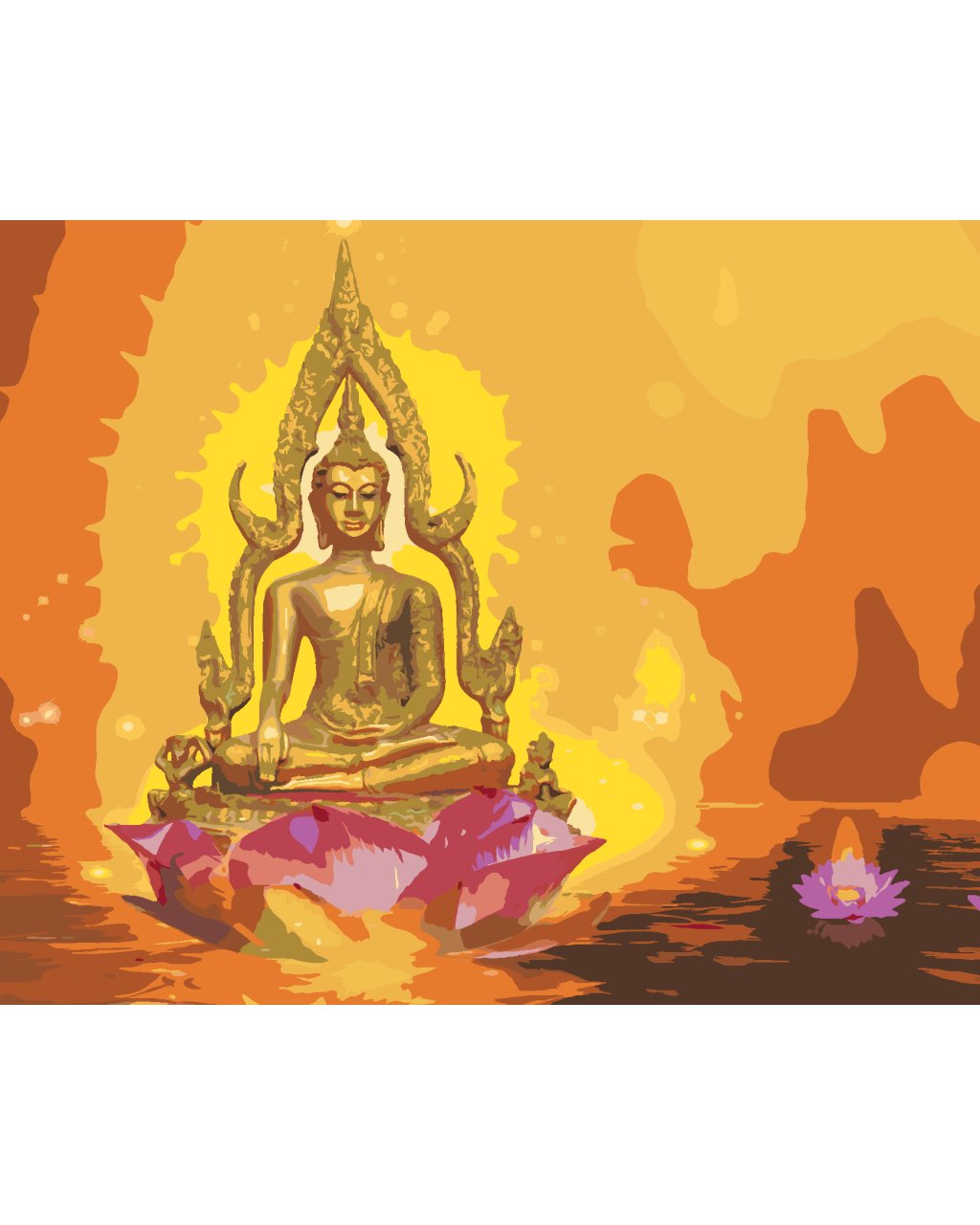 Maľovanie podľa čísel - BUDDHA V LOTOSE A ORANŽOVÉ POZADIE