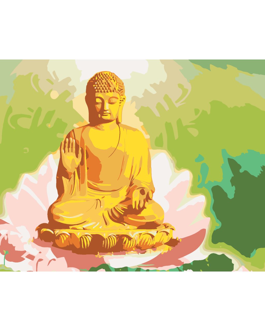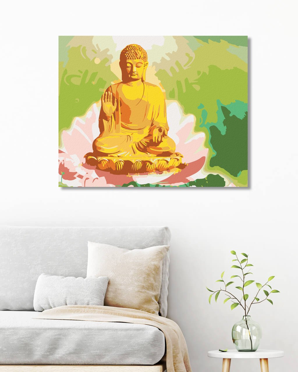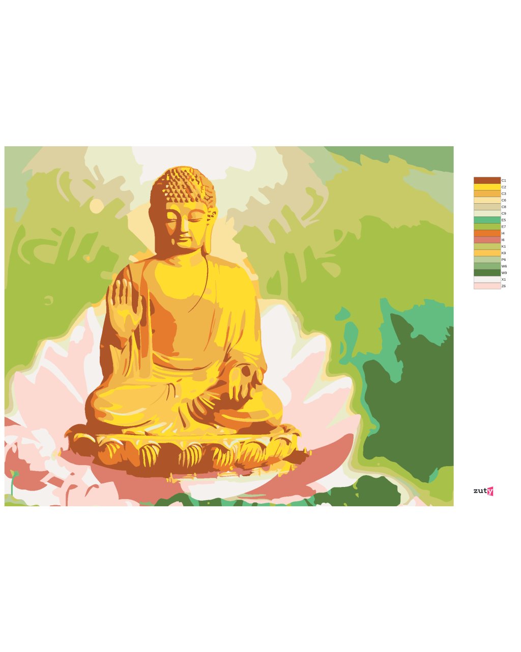 Maľovanie podľa čísel - BUDDHA V LOTOSE A ZELENÉ POZADIE