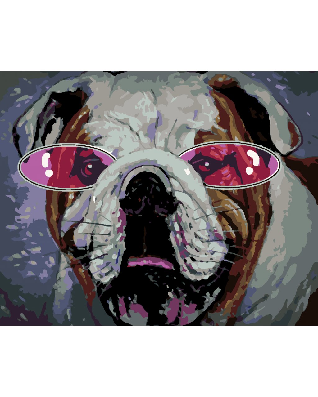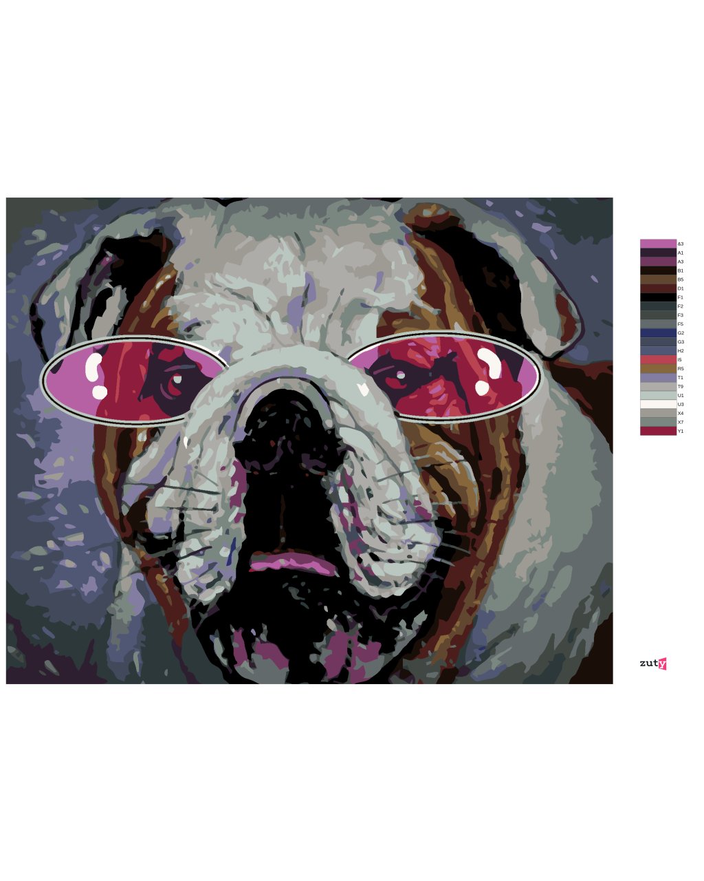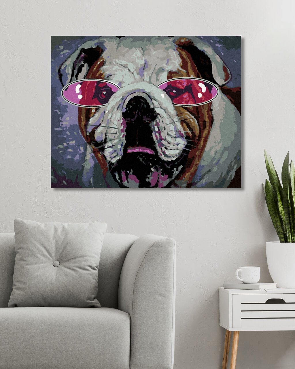 Maľovanie podľa čísel - BULDOČEK S RUŽOVÝMI OKULIARMI