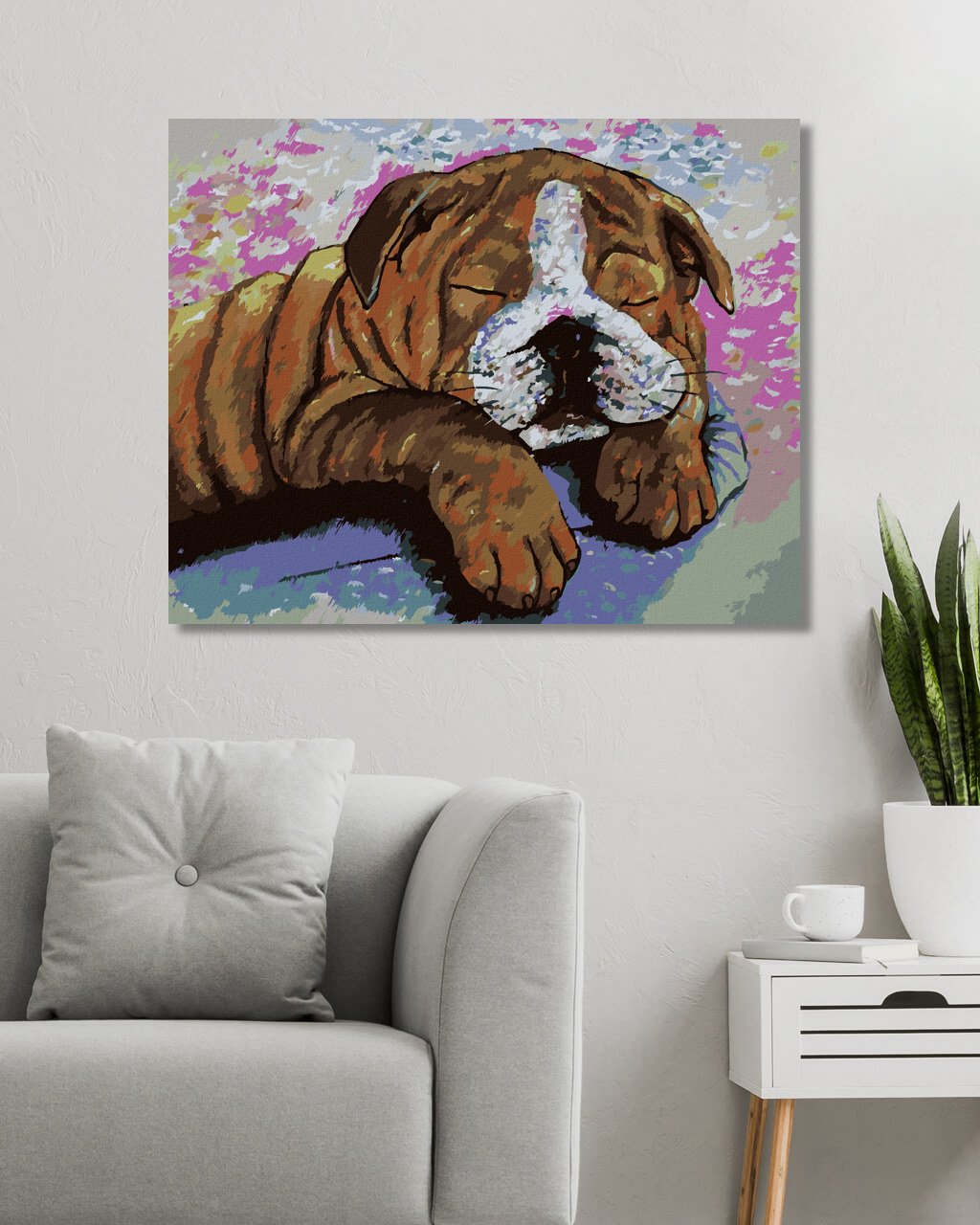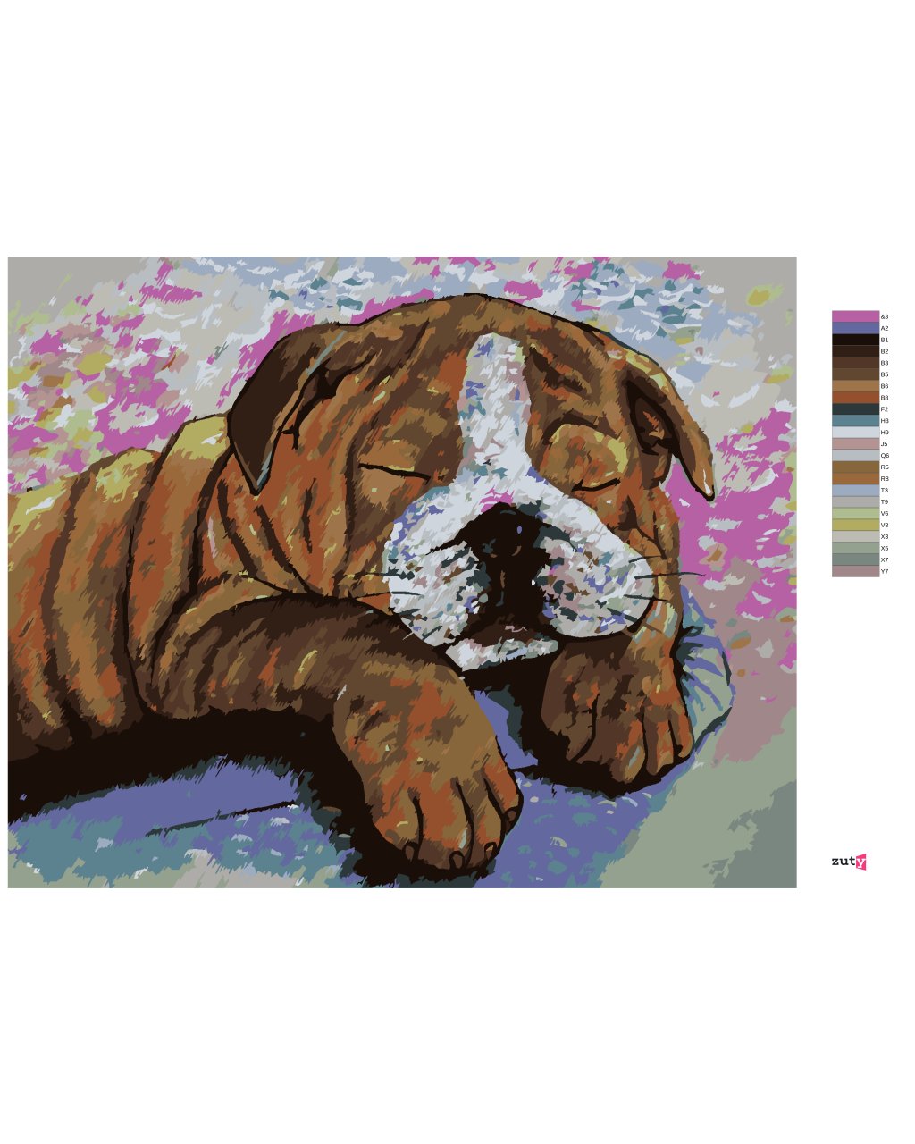 Maľovanie podľa čísel - BULDOČEK V KRAVSKOM PRESTROJENÍ