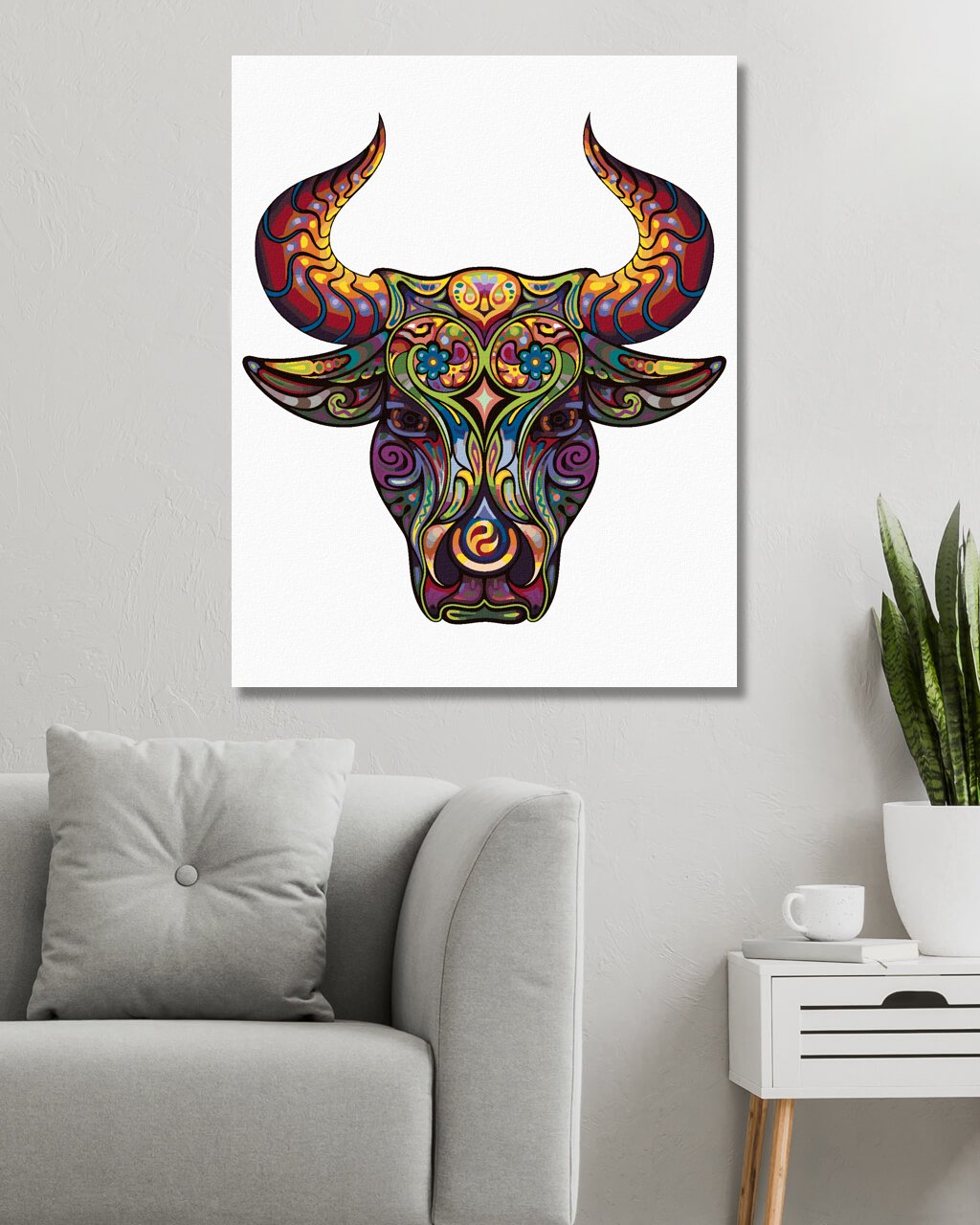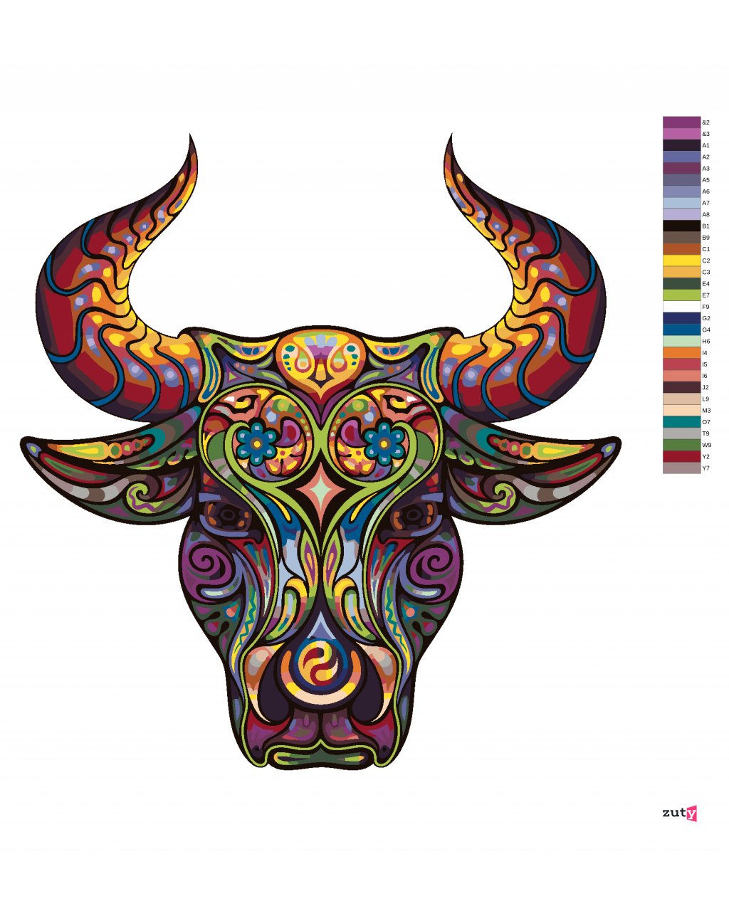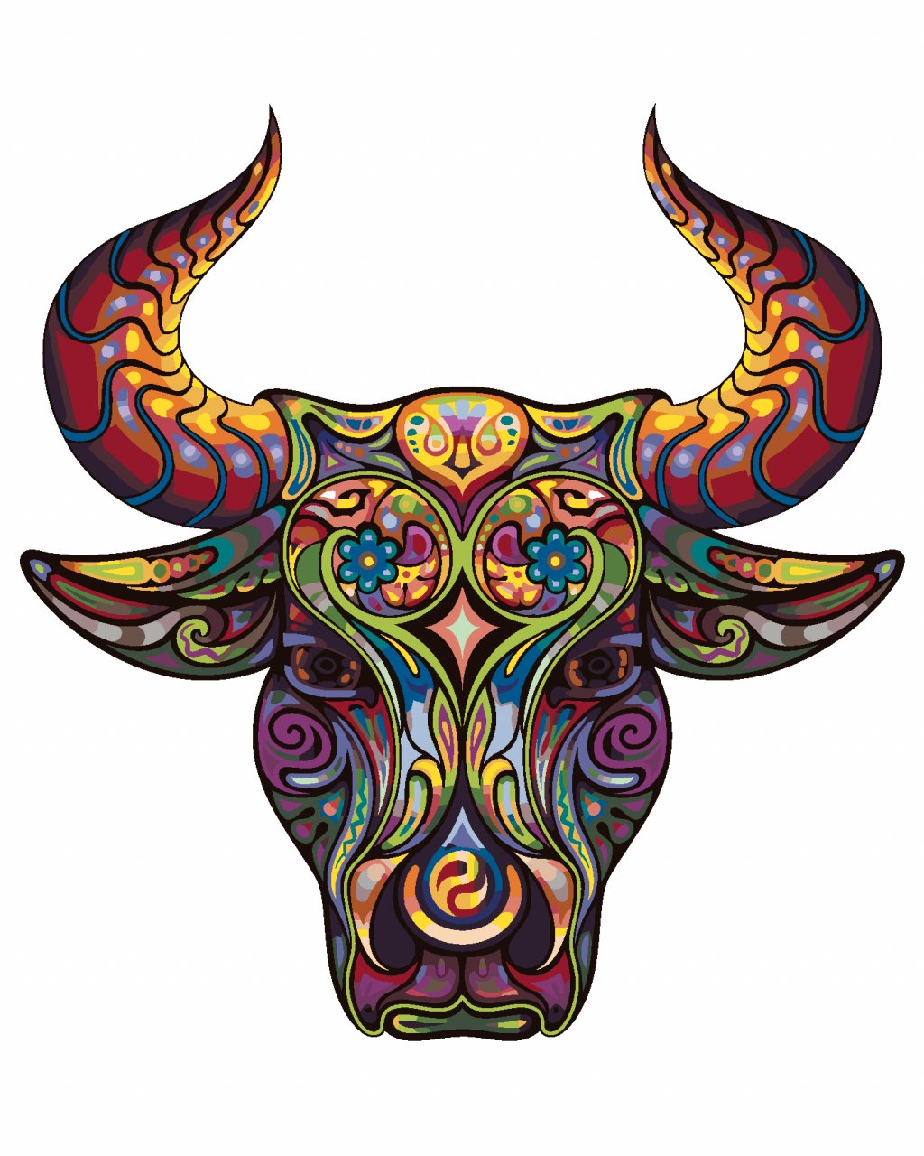 Maľovanie podľa čísel - BÝK S ORNAMENTAMI