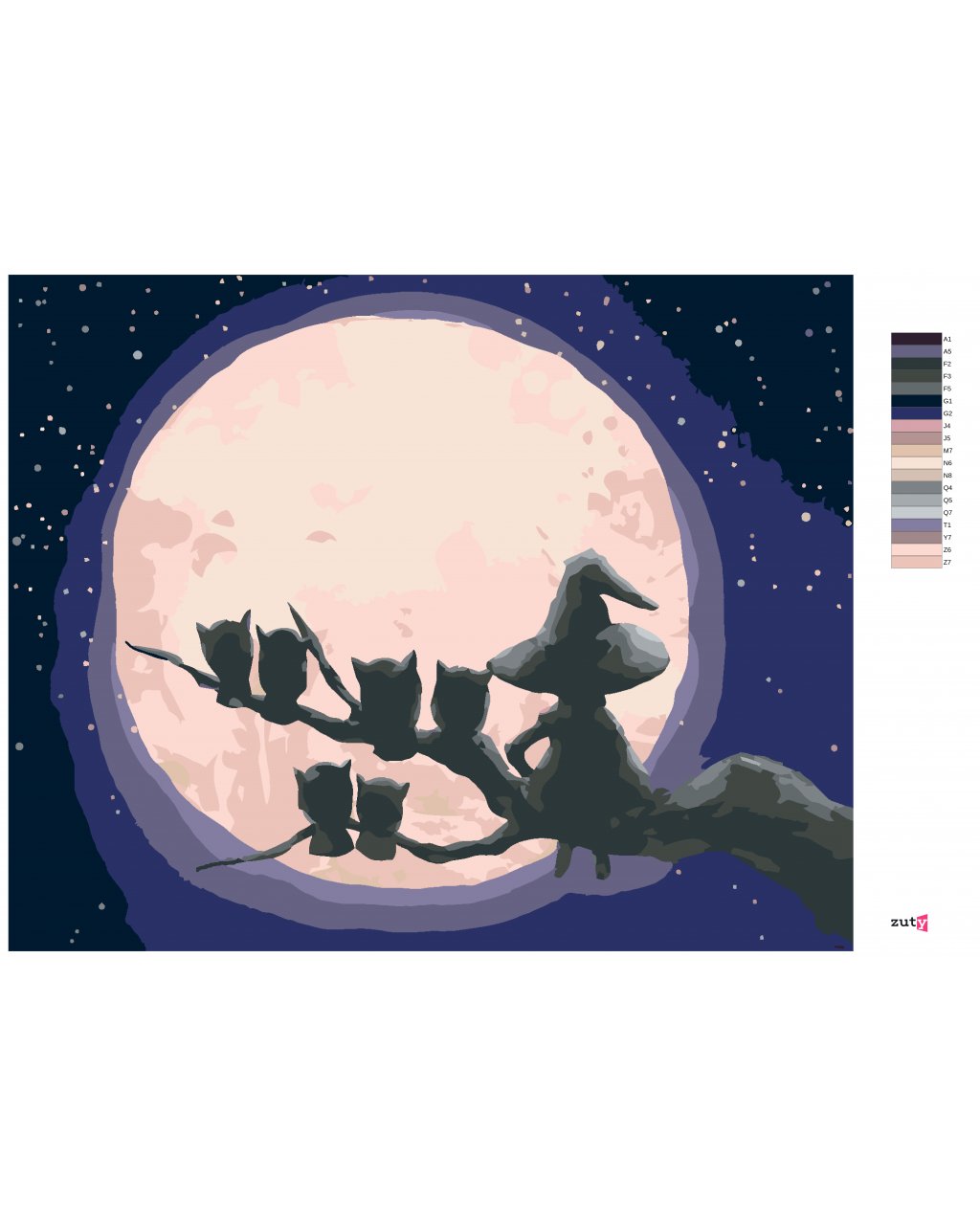 Maľovanie podľa čísel - ČARODEJNICE A SOVY SEDIACE NAPROTI MESIACU