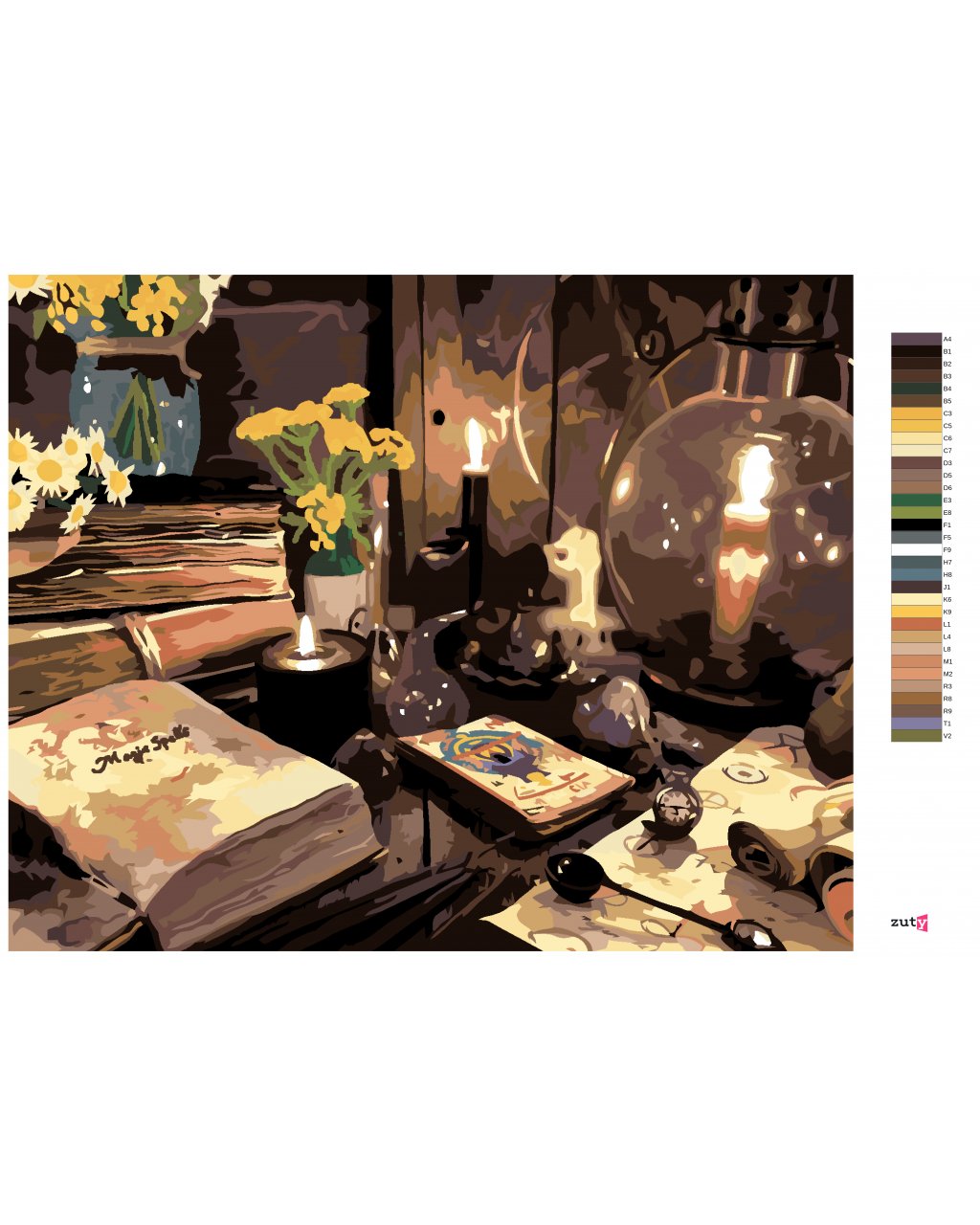 Maľovanie podľa čísel - ČAROVNÁ KNIHA A SVIEČKY